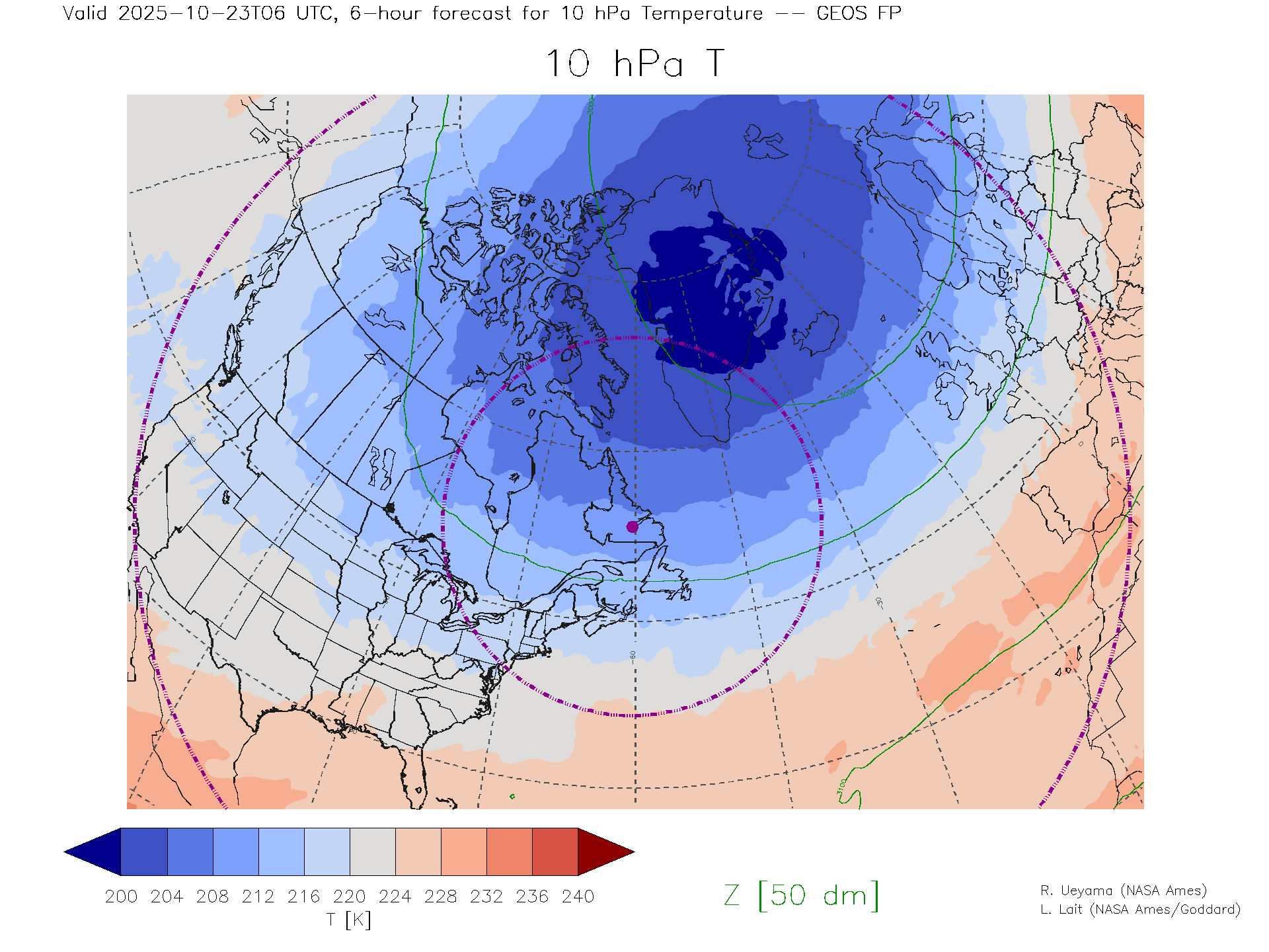 GEOS Forecast 10 hPa Temp.