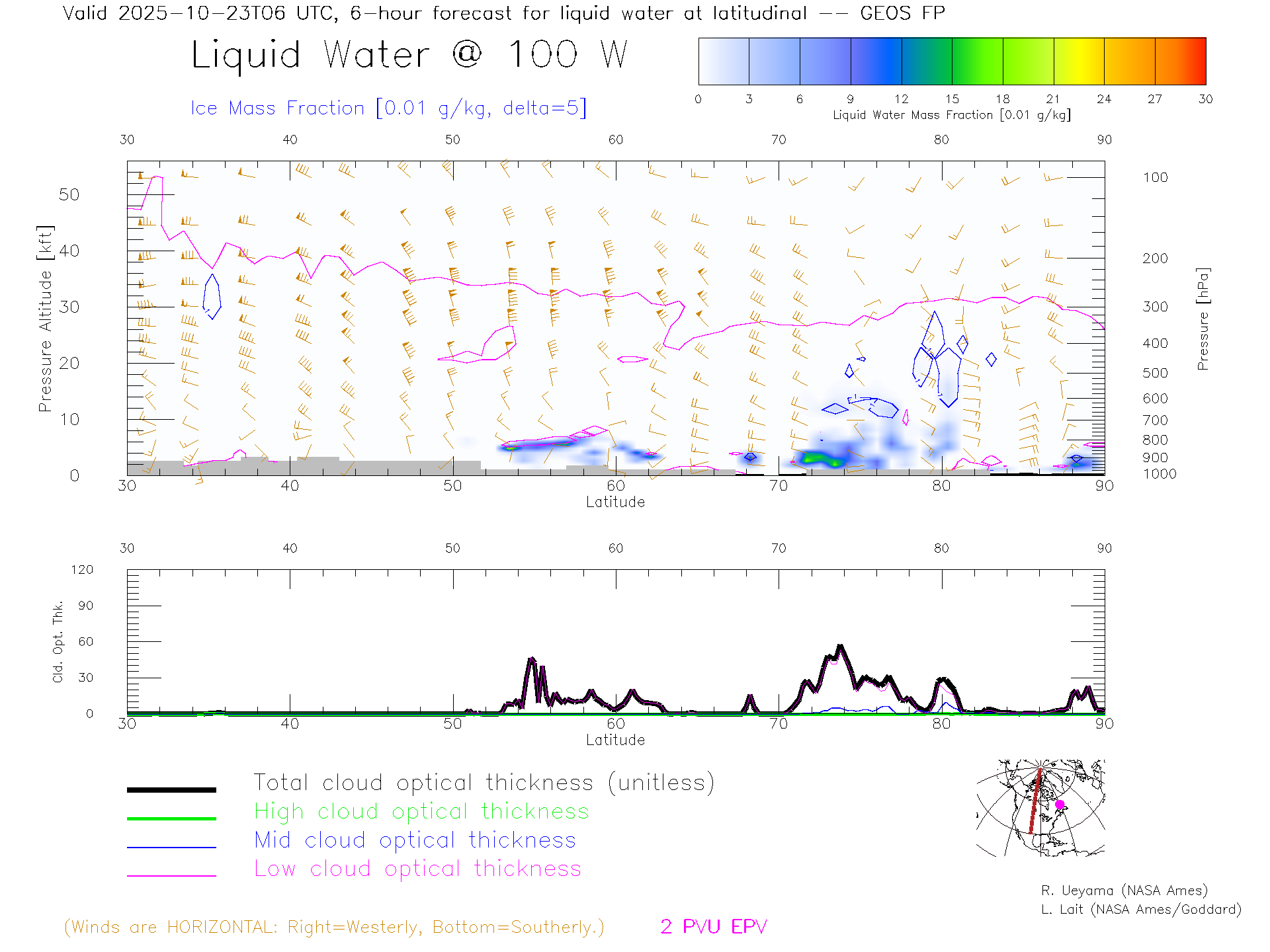 GEOS Forecast Cloud Water Content X-Section (100 W)
