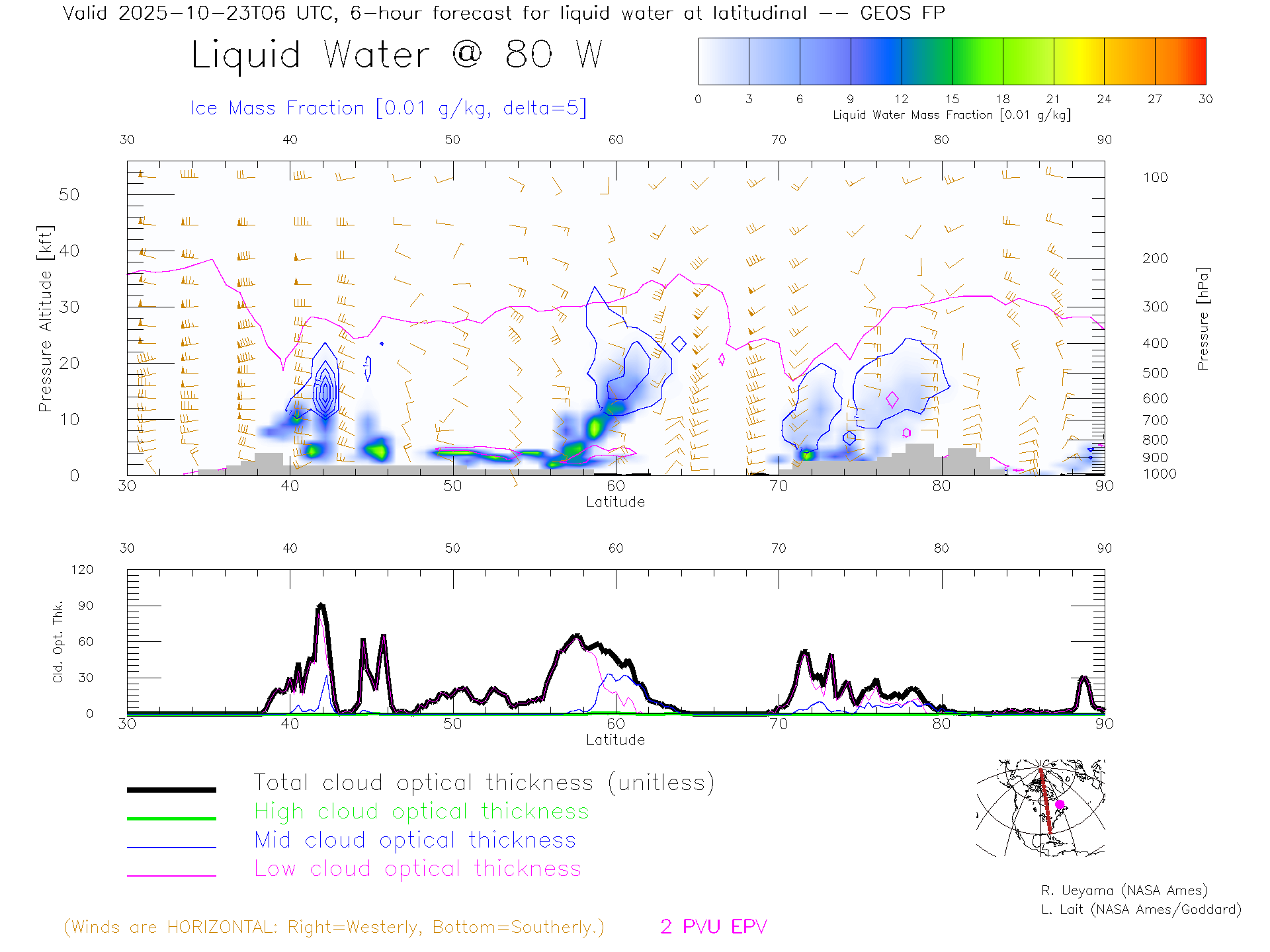 GEOS Forecast Cloud Water Content X-Section (80 W)