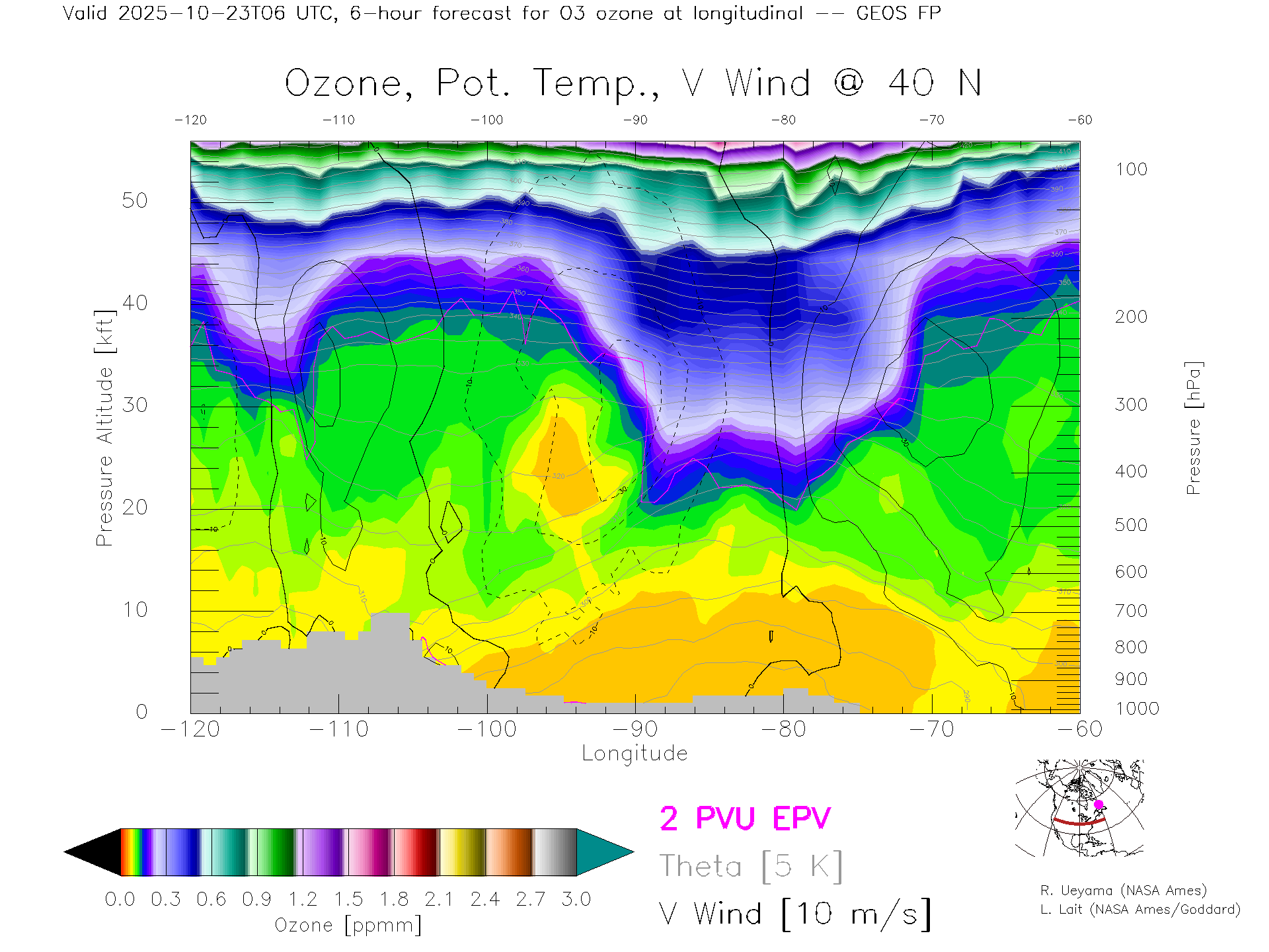 GEOS Forecast Ozone X-Section (40 N)