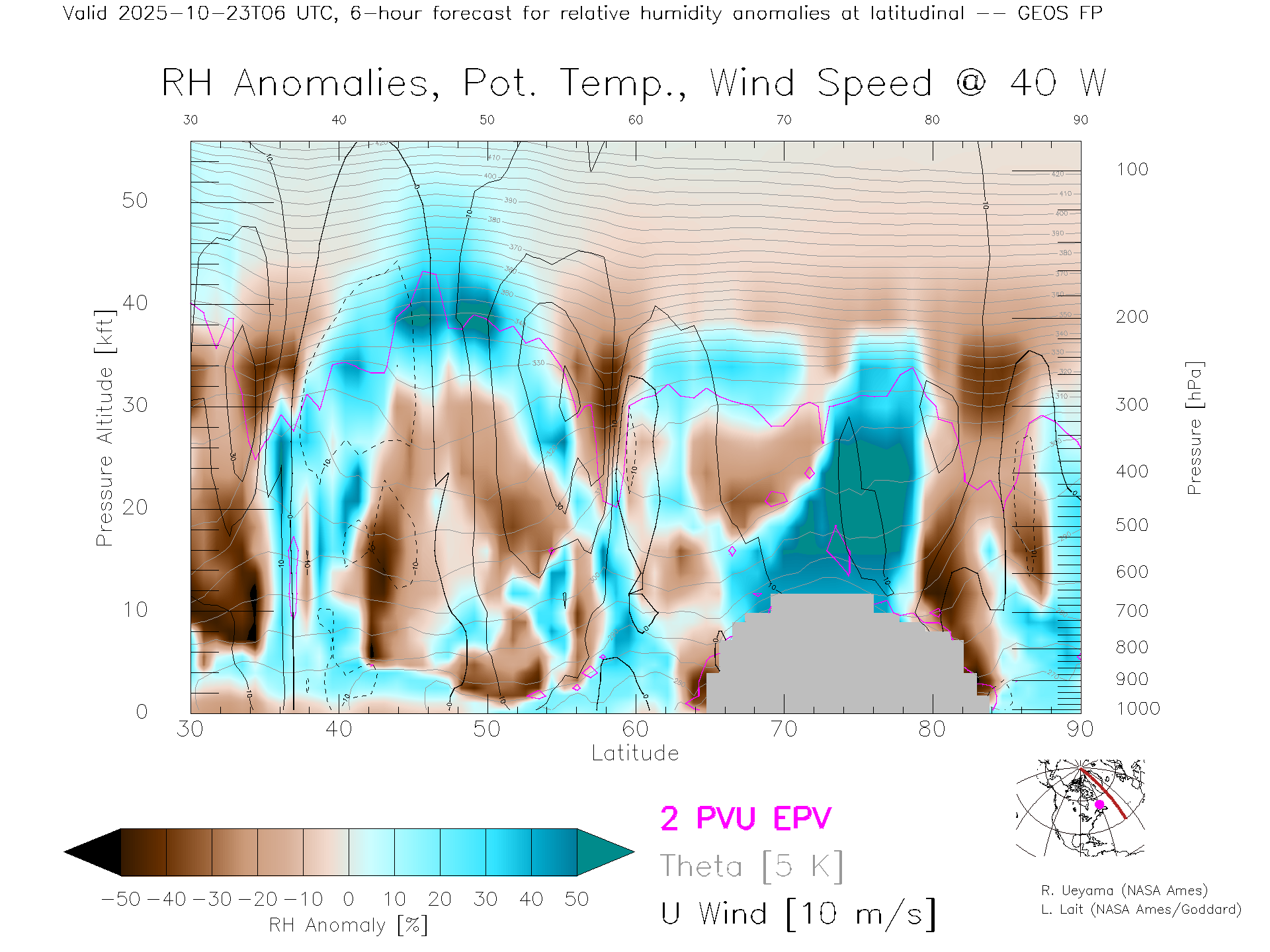 GEOS Forecast Rel. Hum. X-Section (40 W)