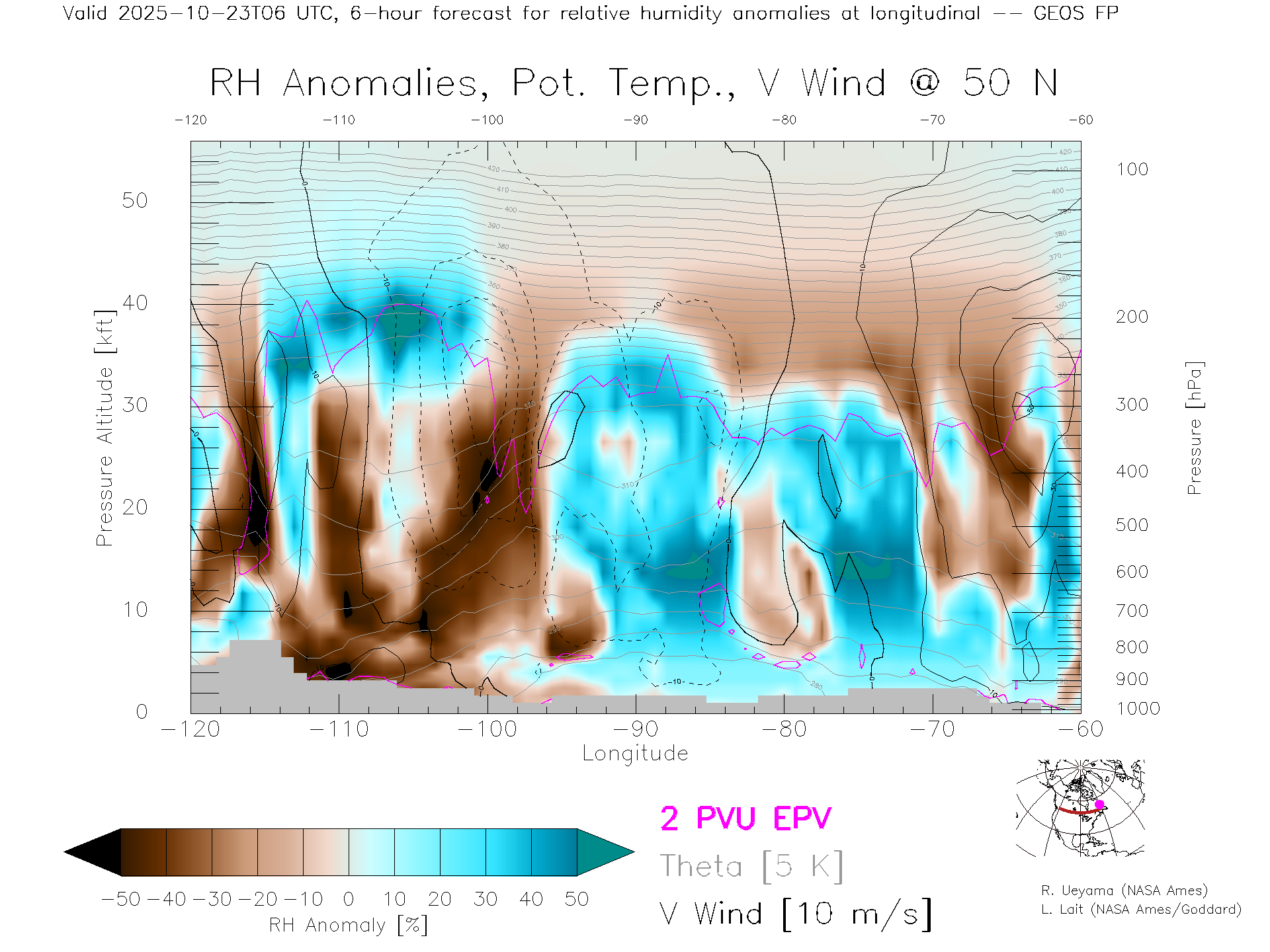 GEOS Forecast Rel. Hum. X-Section (50 N)