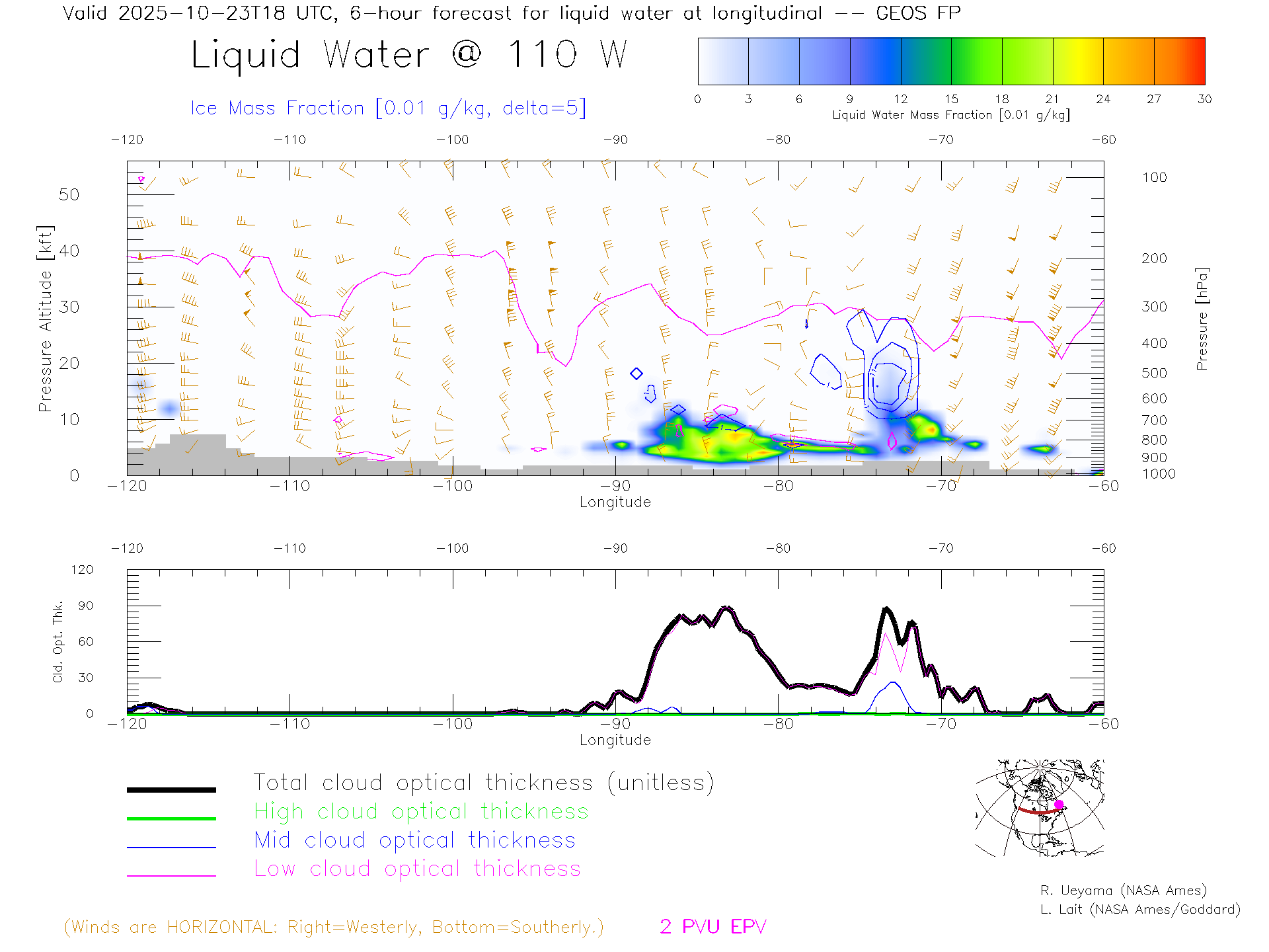 GEOS Forecast Cloud Water Content X-Section (50 N)