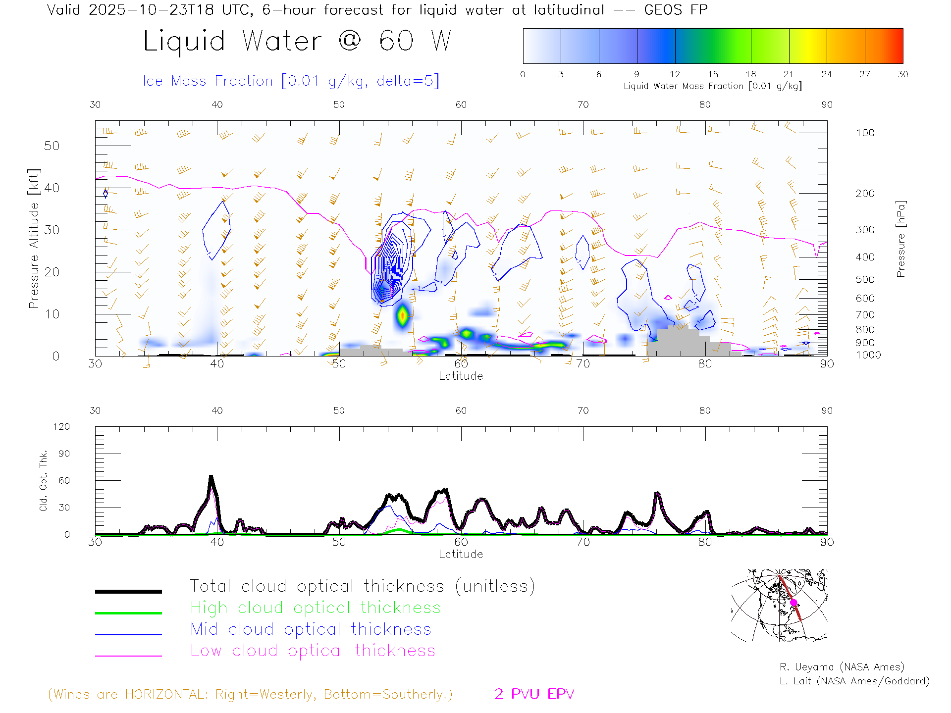 GEOS Forecast Cloud Water Content X-Section (60 W)