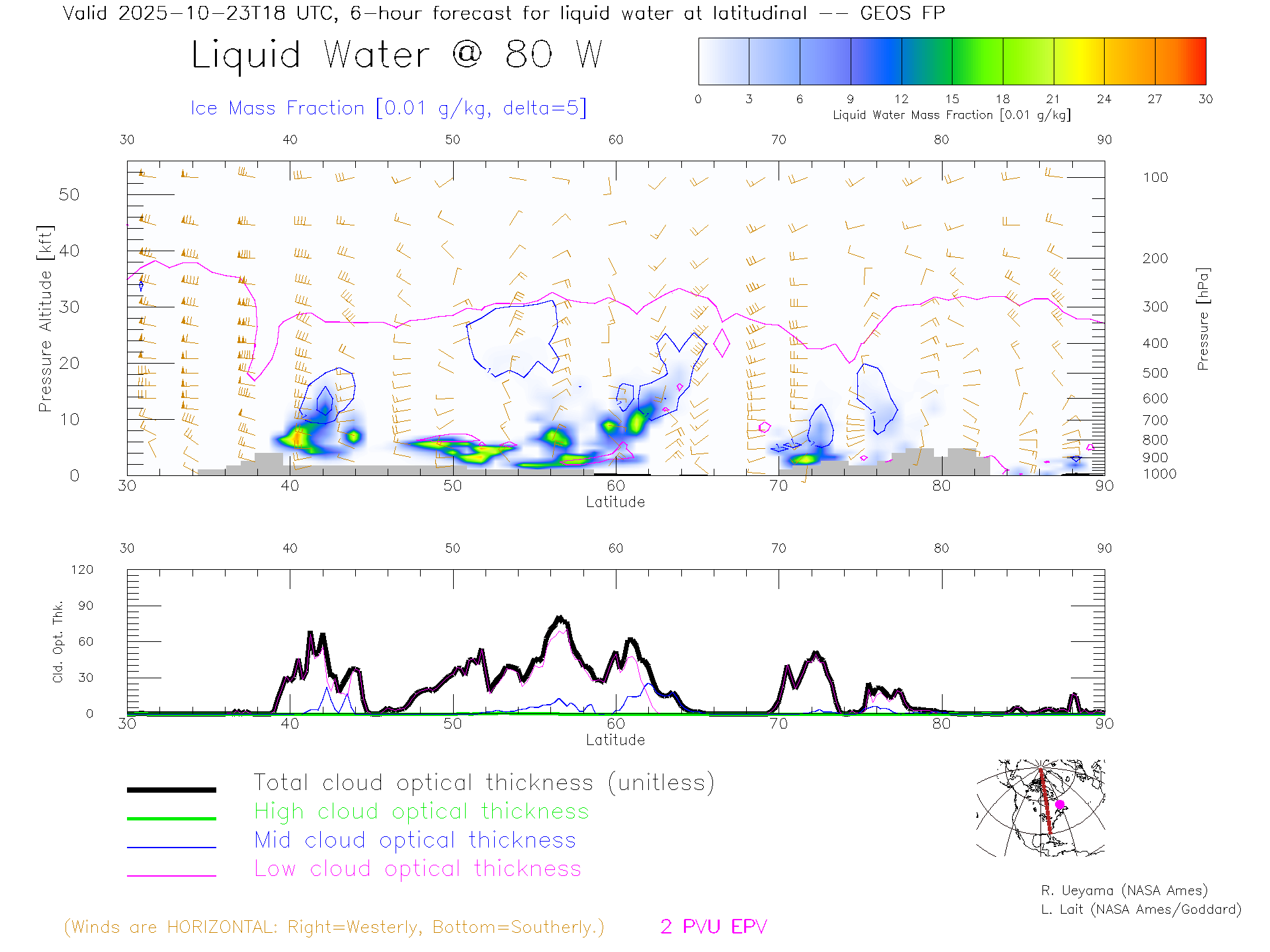GEOS Forecast Cloud Water Content X-Section (80 W)