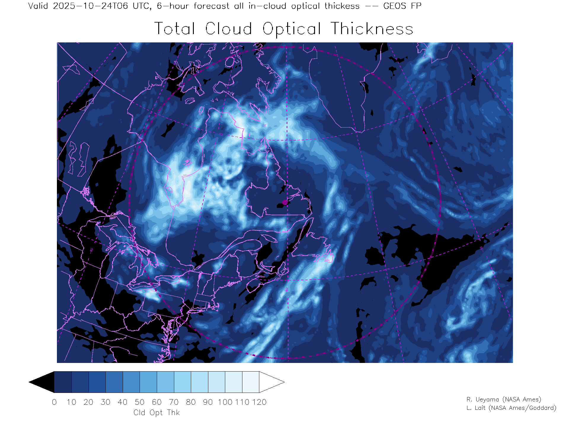 GEOS Forecast Total Cloud Optical thickness