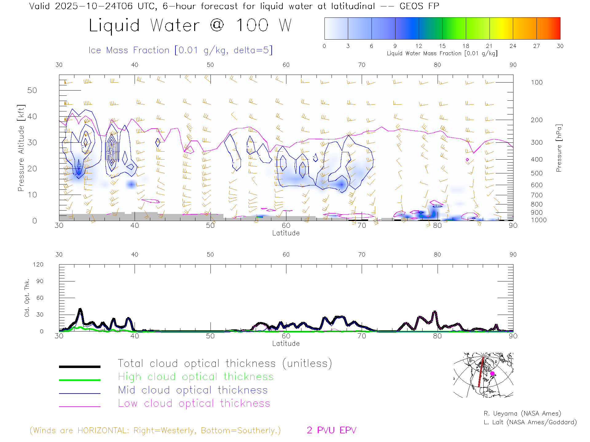 GEOS Forecast Cloud Water Content X-Section (100 W)