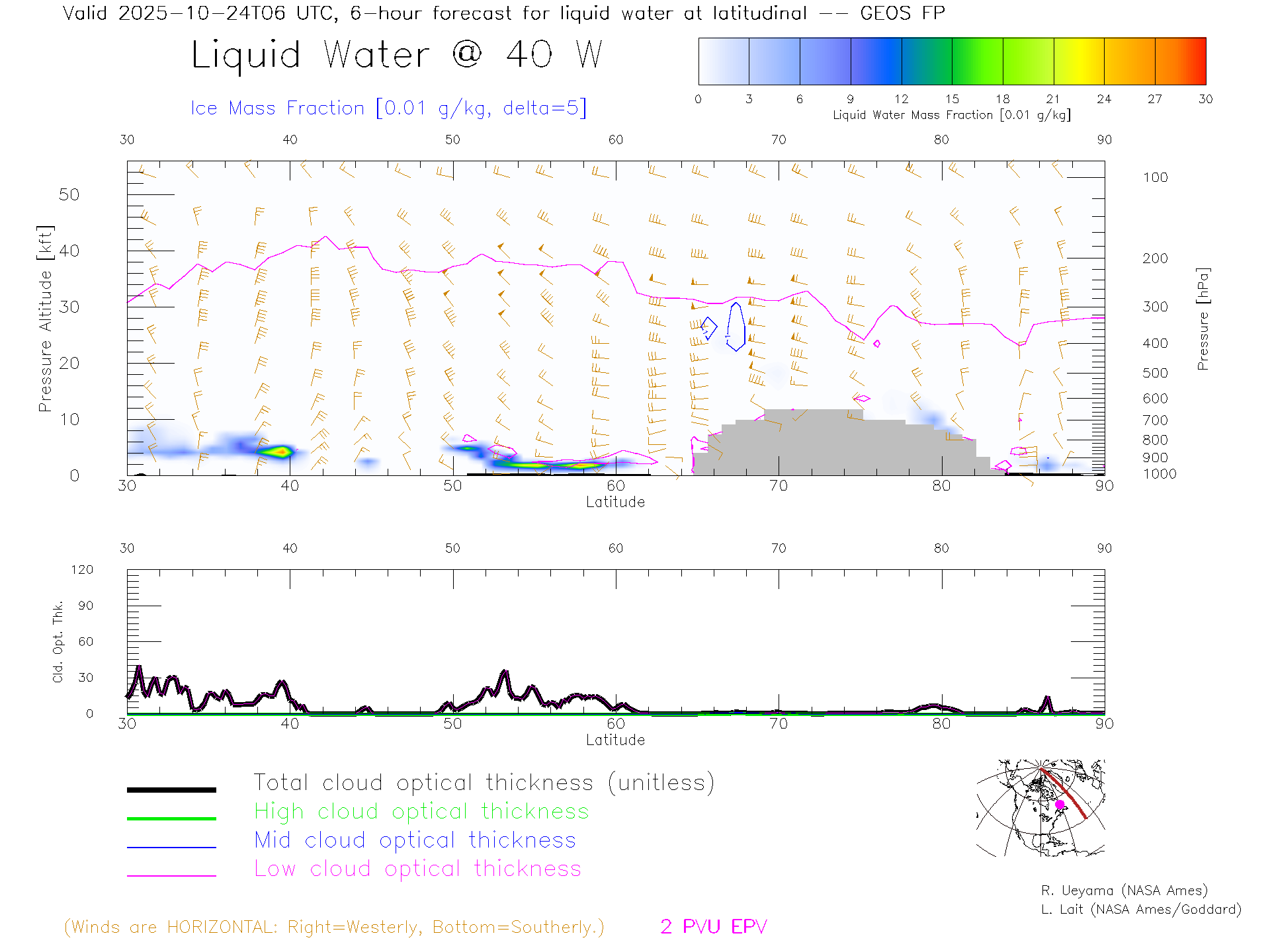 GEOS Forecast Cloud Water Content X-Section (40 W)