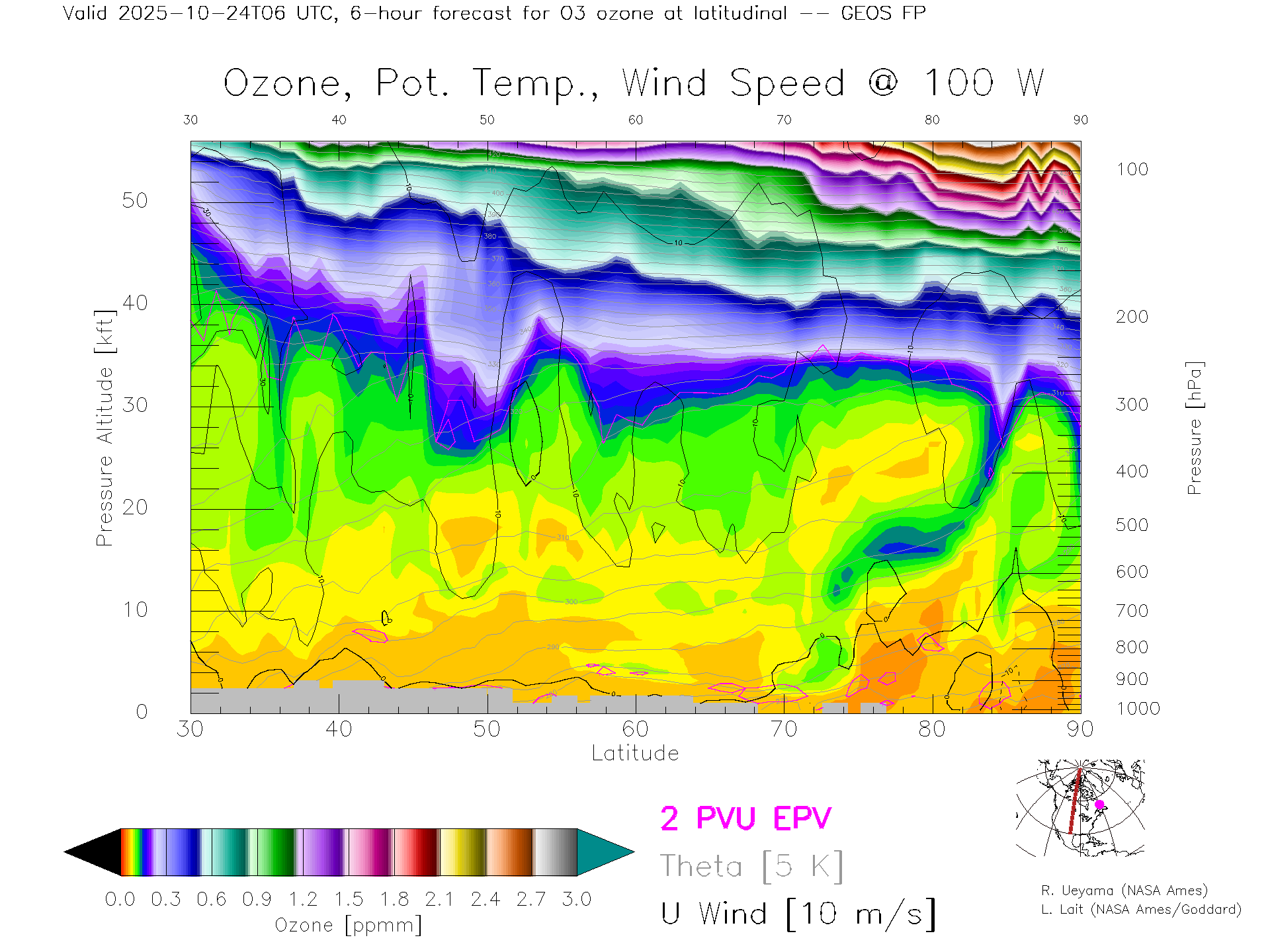 GEOS Forecast Ozone X-Section (100 W)