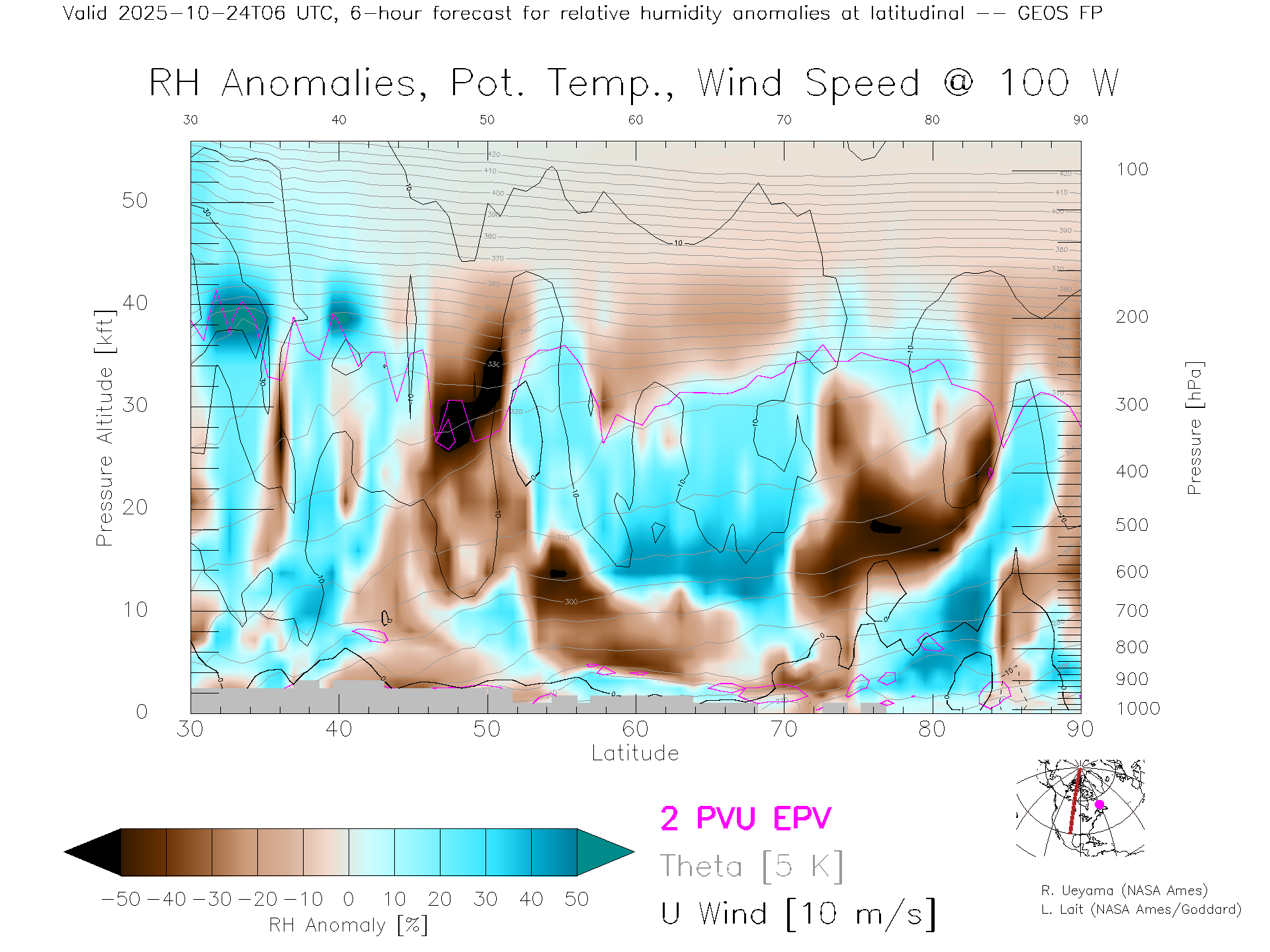 GEOS Forecast Rel. Hum. X-Section (100 W)