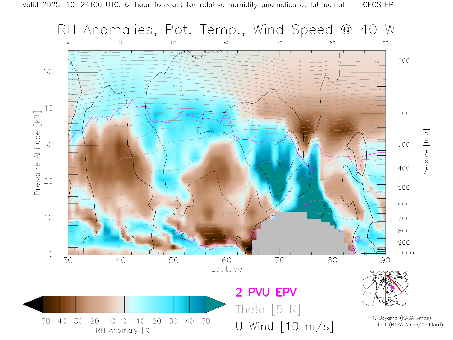 GEOS Forecast Rel. Hum. X-Section (40 W)