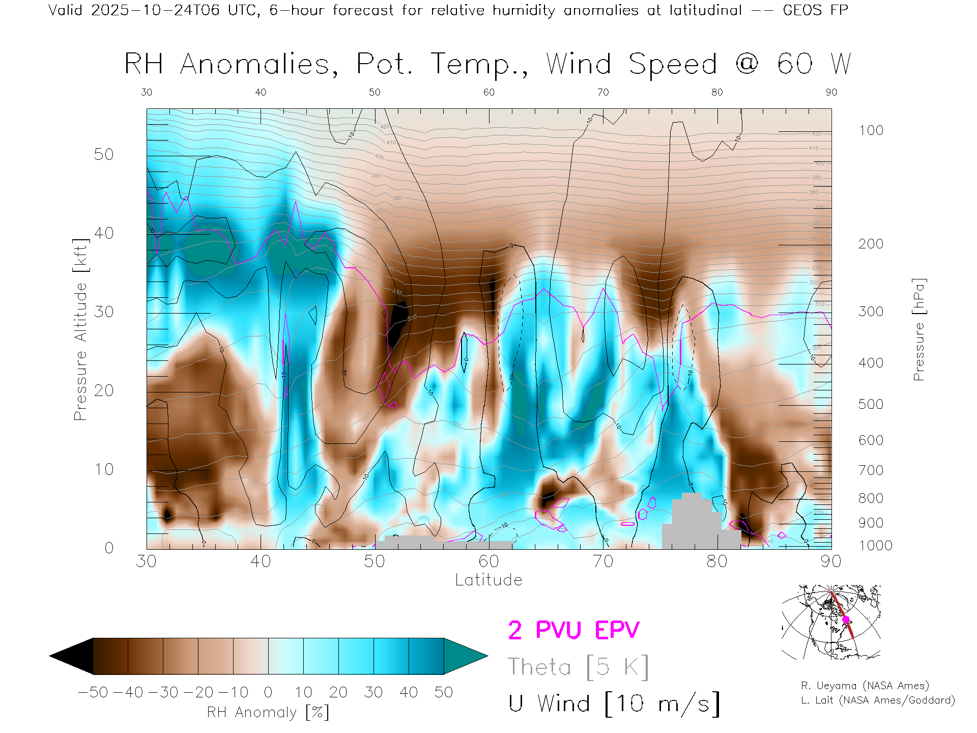 GEOS Forecast Rel. Hum. X-Section (60 W)