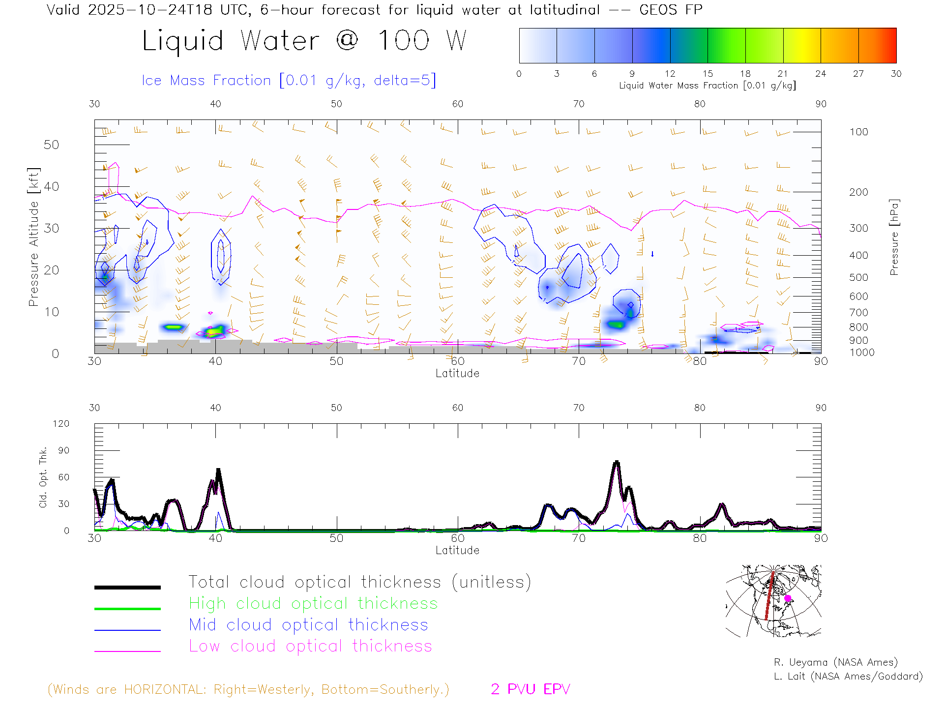 GEOS Forecast Cloud Water Content X-Section (100 W)