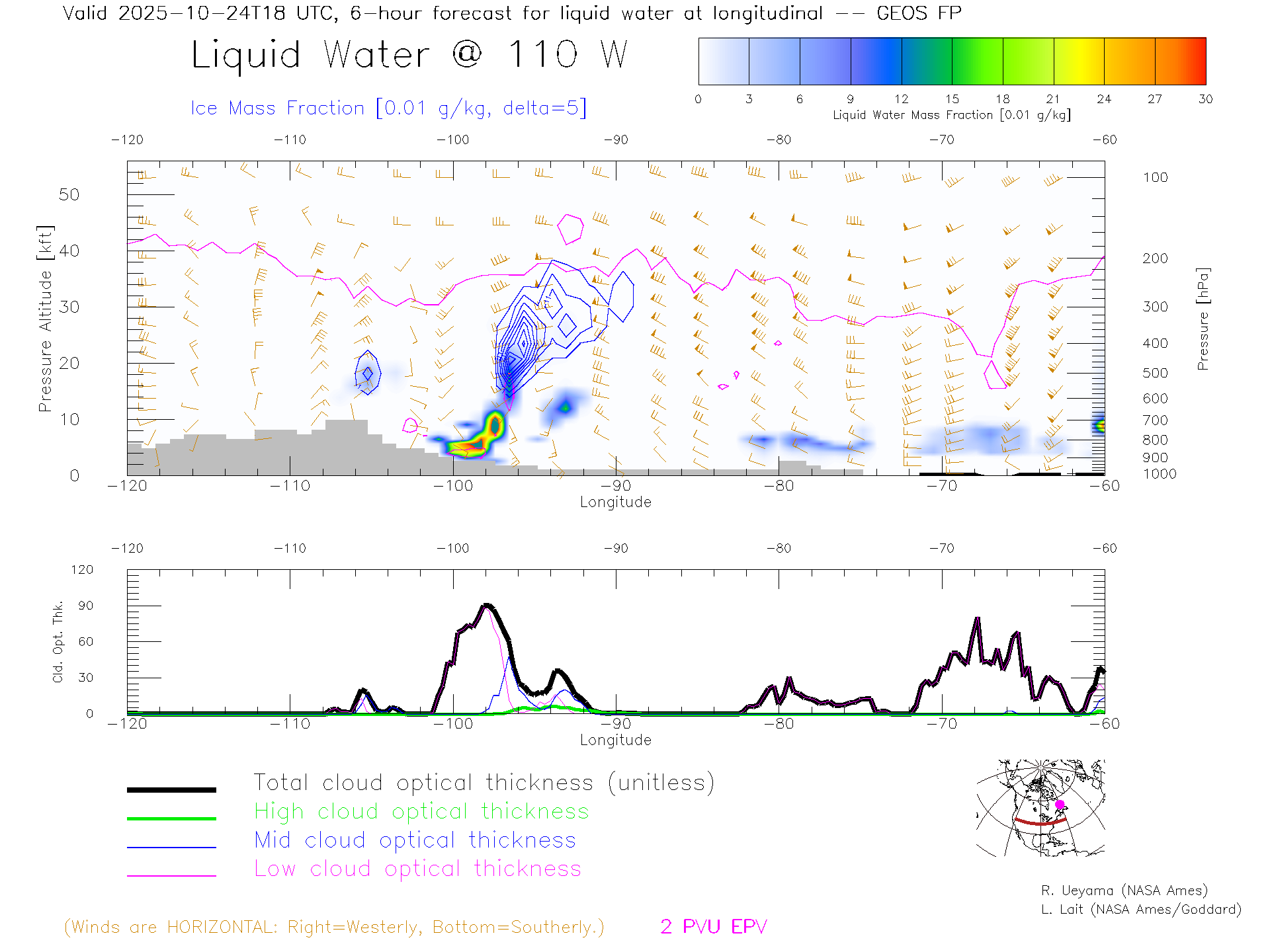 GEOS Forecast Cloud Water Content X-Section (40 N)