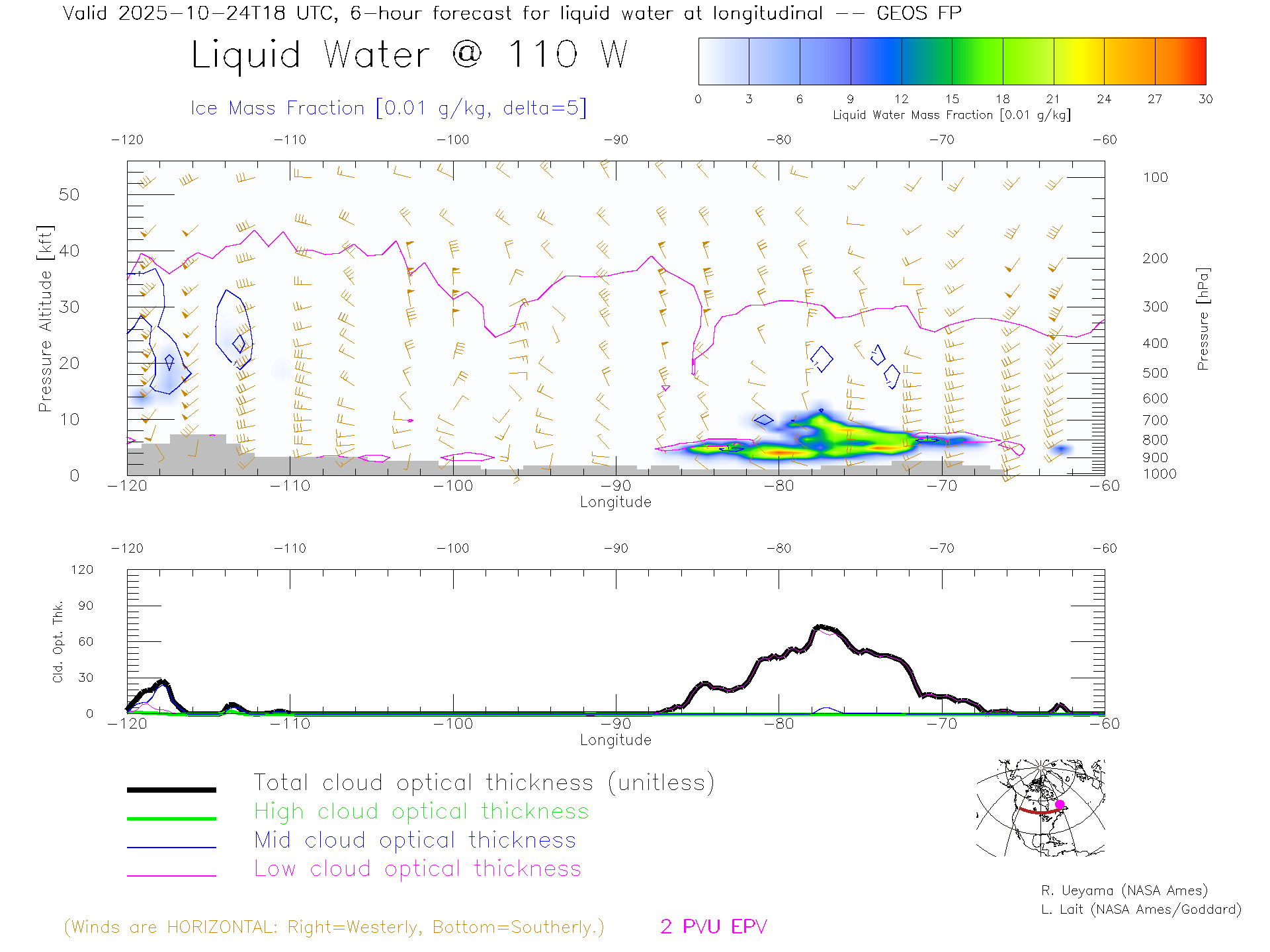 GEOS Forecast Cloud Water Content X-Section (50 N)