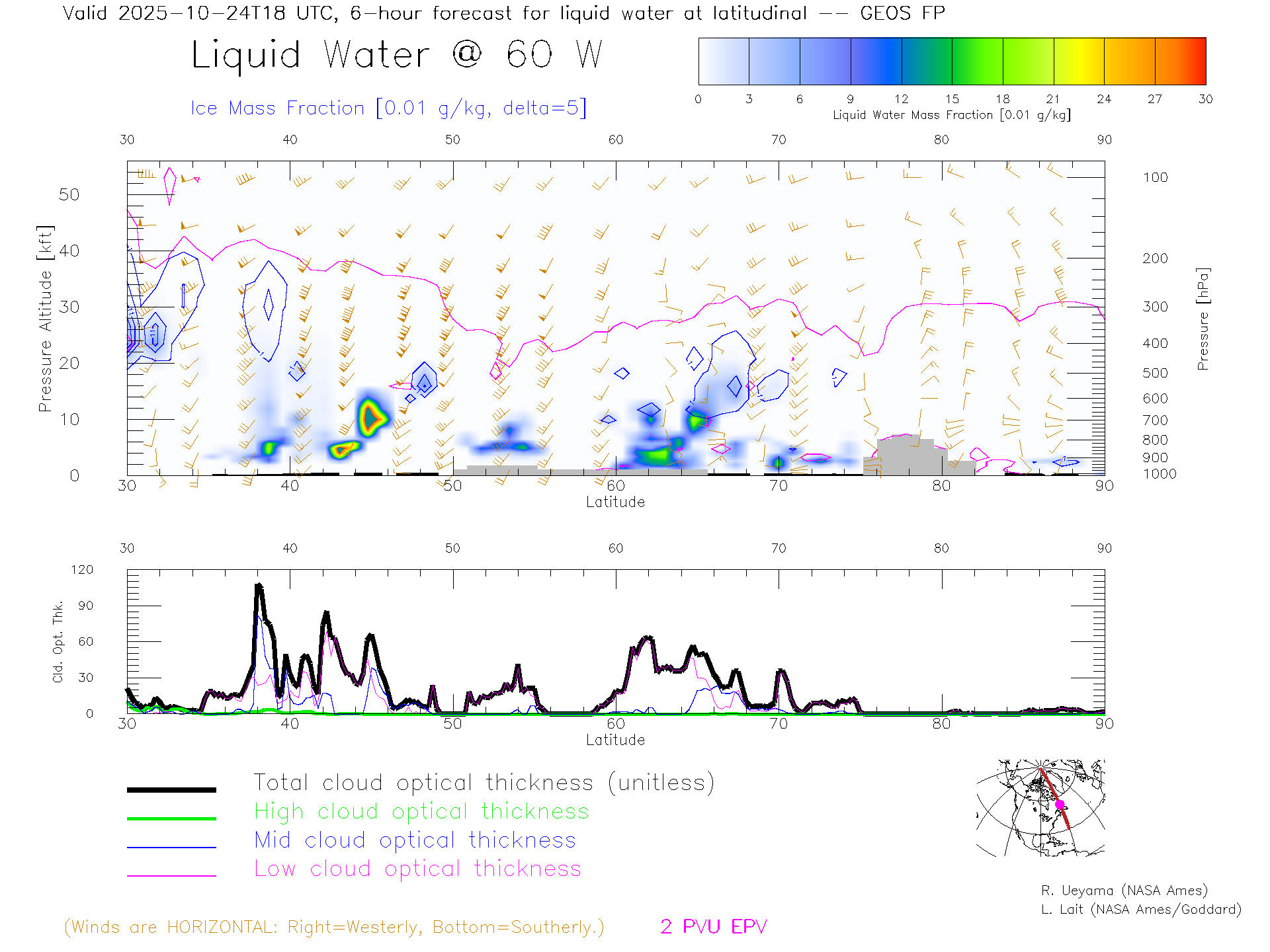 GEOS Forecast Cloud Water Content X-Section (60 W)