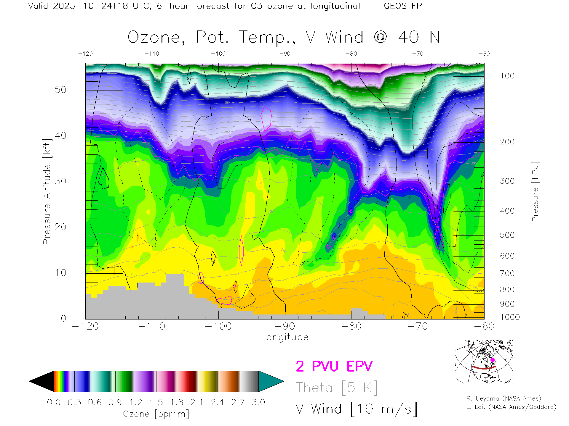 GEOS Forecast Ozone X-Section (40 N)