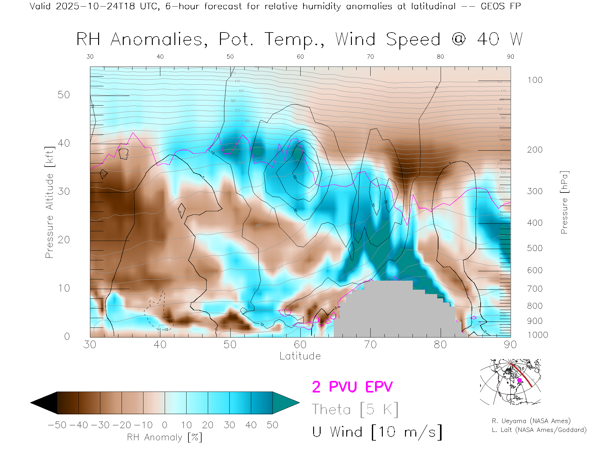 GEOS Forecast Rel. Hum. X-Section (40 W)