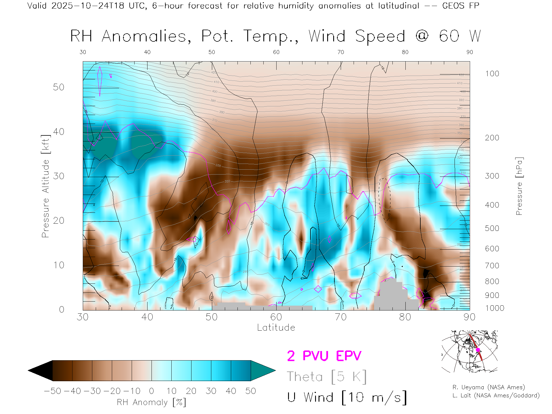GEOS Forecast Rel. Hum. X-Section (60 W)