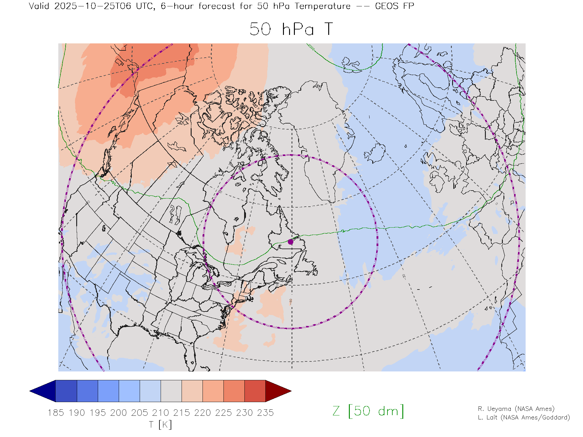 GEOS Forecast 50 hPa Temp.