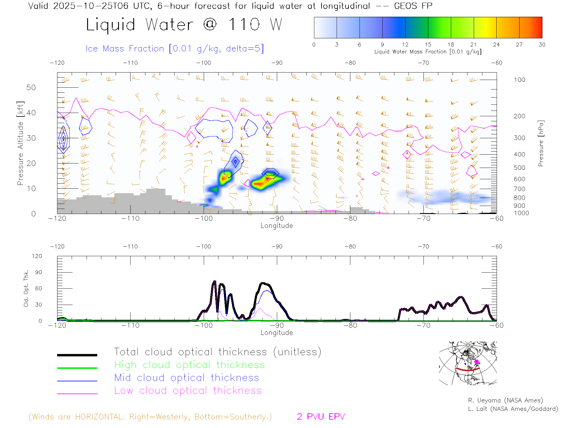 GEOS Forecast Cloud Water Content X-Section (40 N)