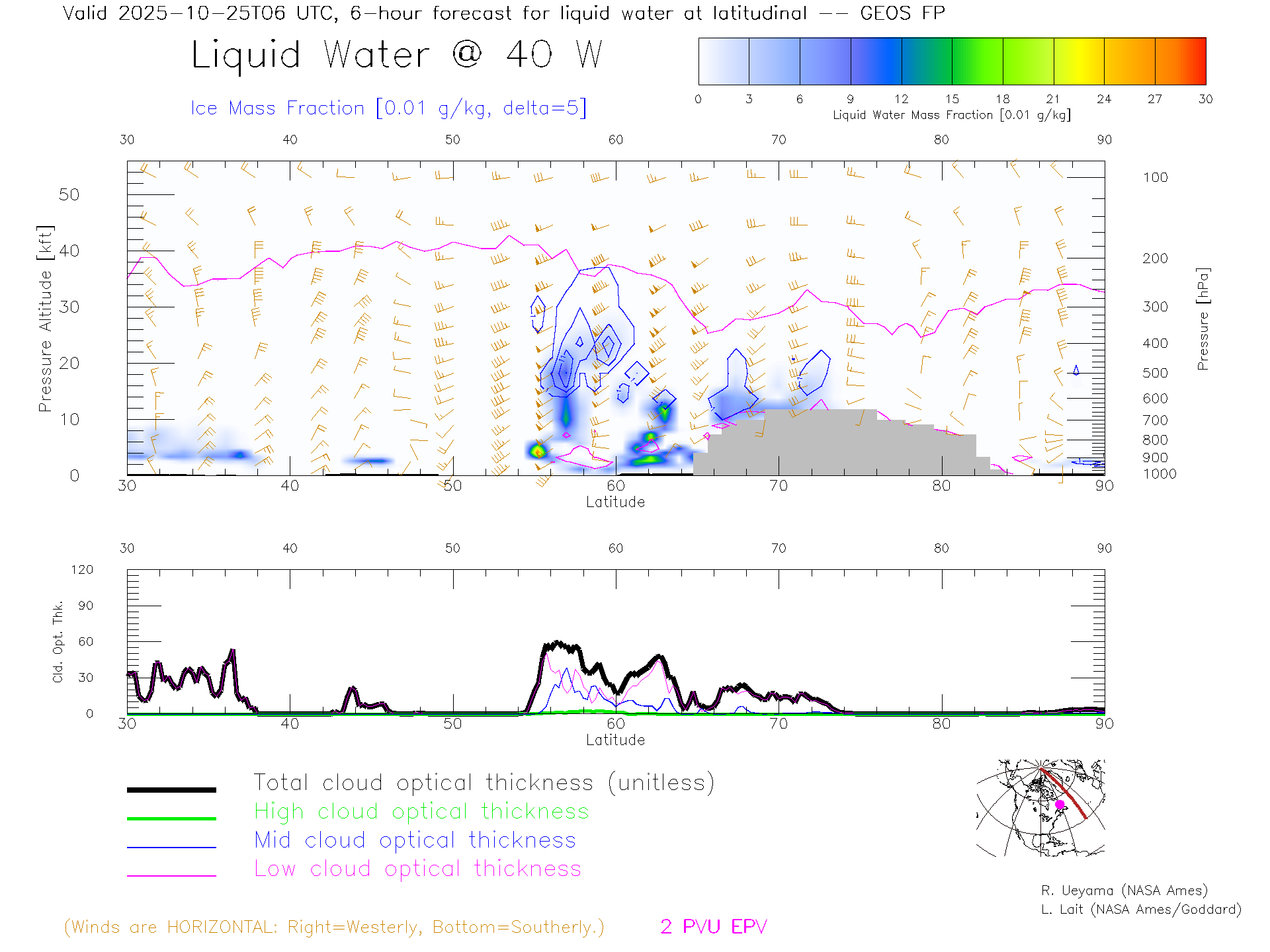 GEOS Forecast Cloud Water Content X-Section (40 W)
