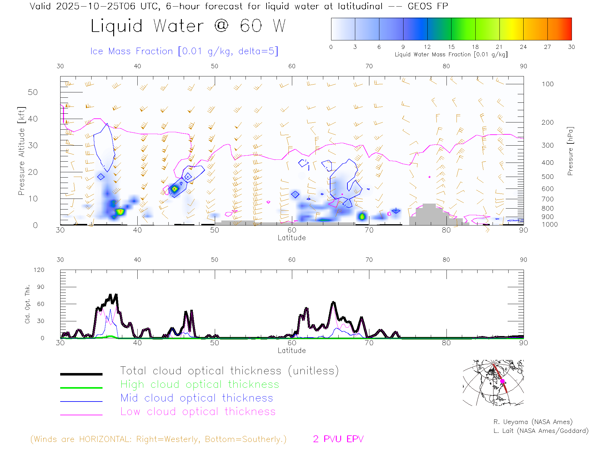 GEOS Forecast Cloud Water Content X-Section (60 W)