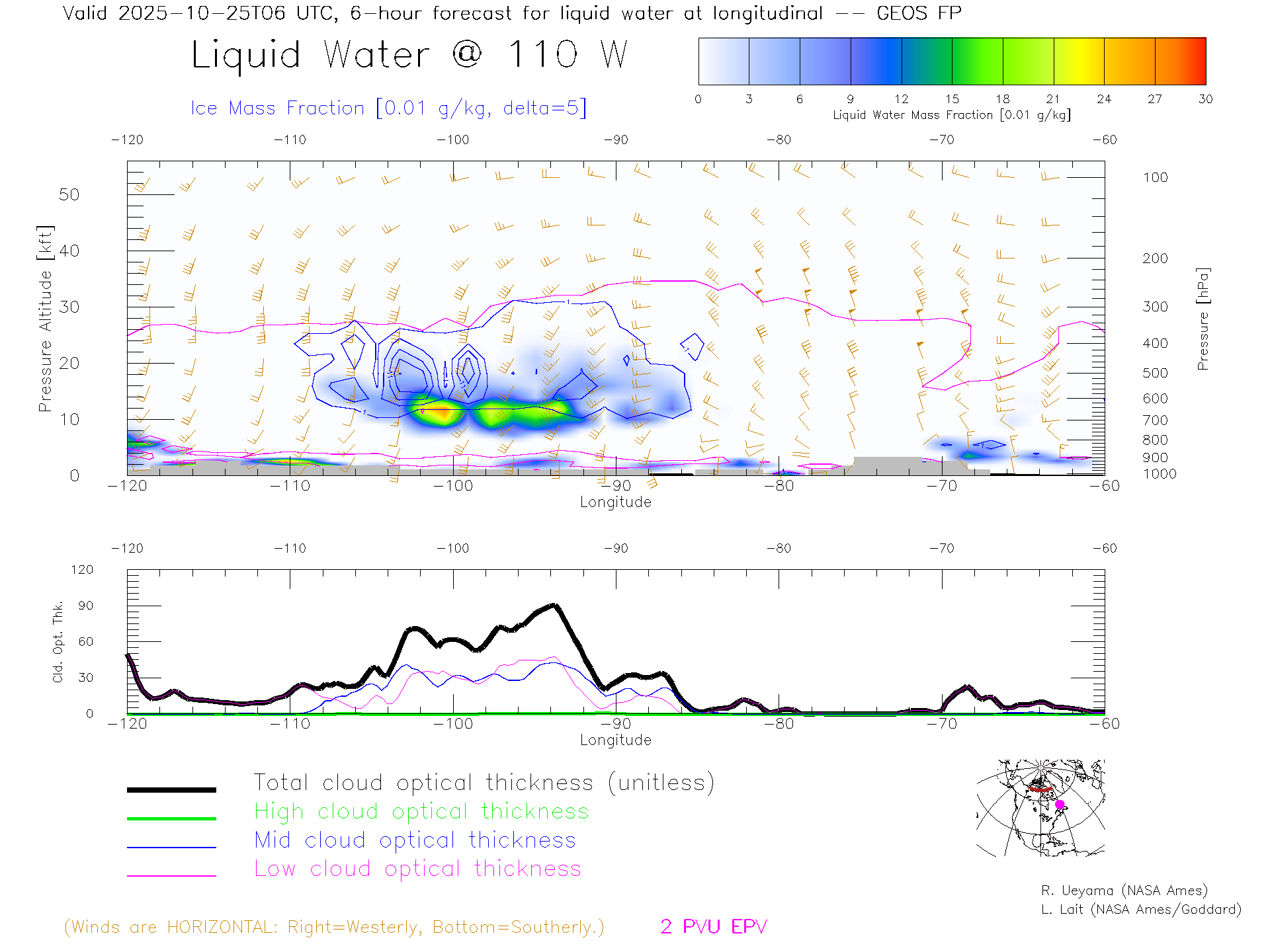 GEOS Forecast Cloud Water Content X-Section (70 N)