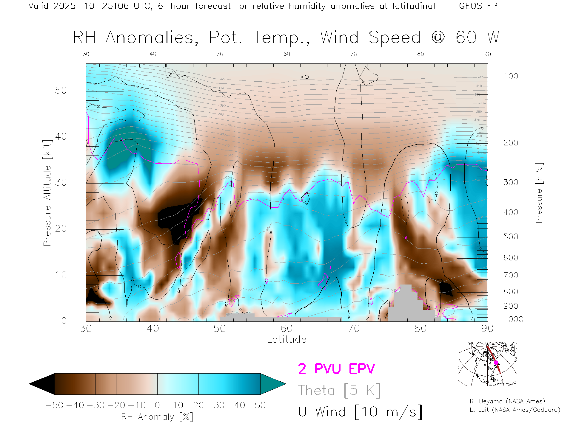 GEOS Forecast Rel. Hum. X-Section (60 W)