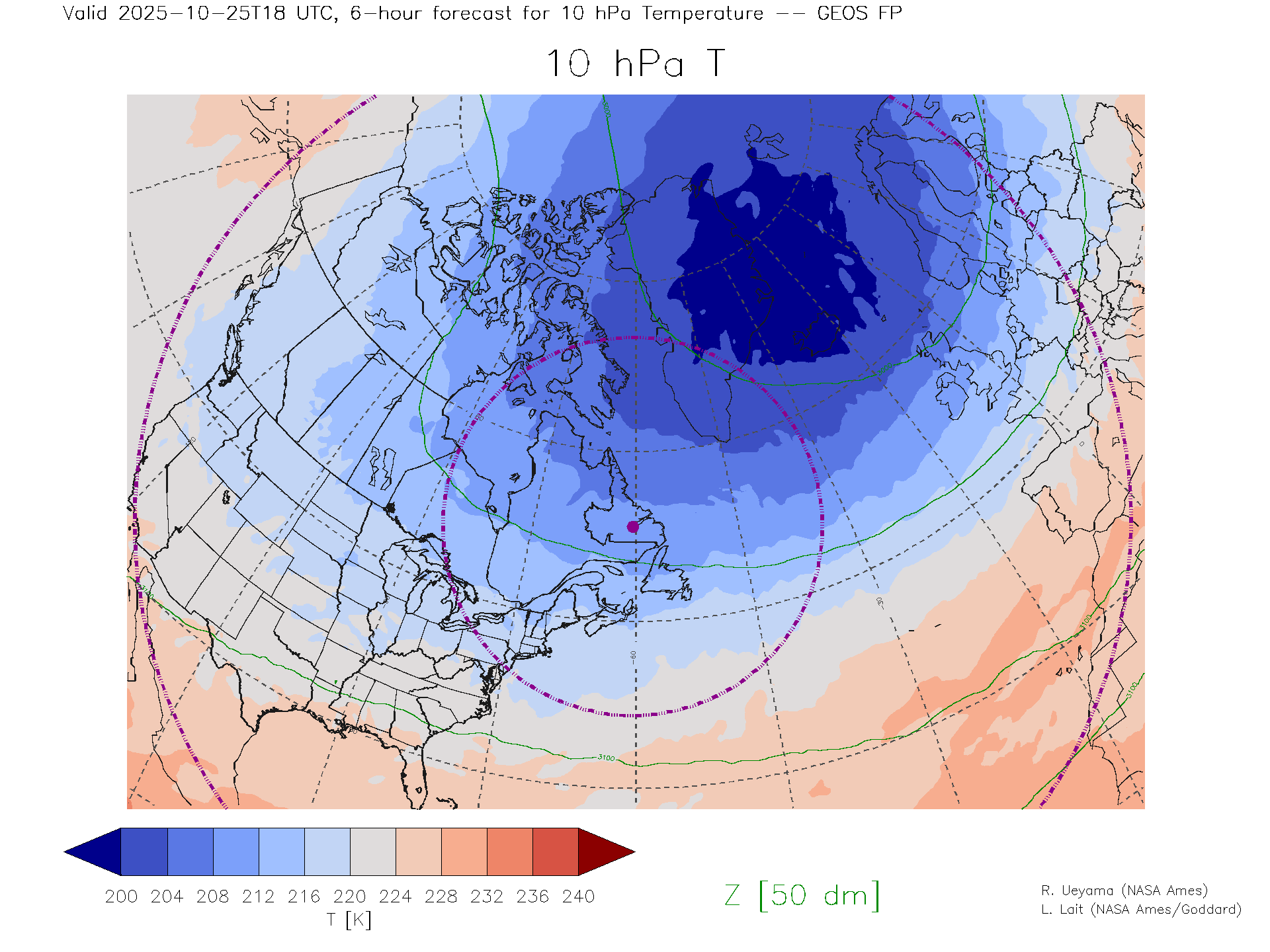 GEOS Forecast 10 hPa Temp.