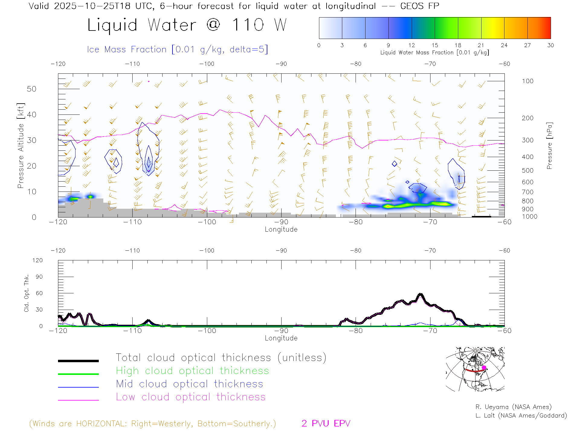 GEOS Forecast Cloud Water Content X-Section (50 N)