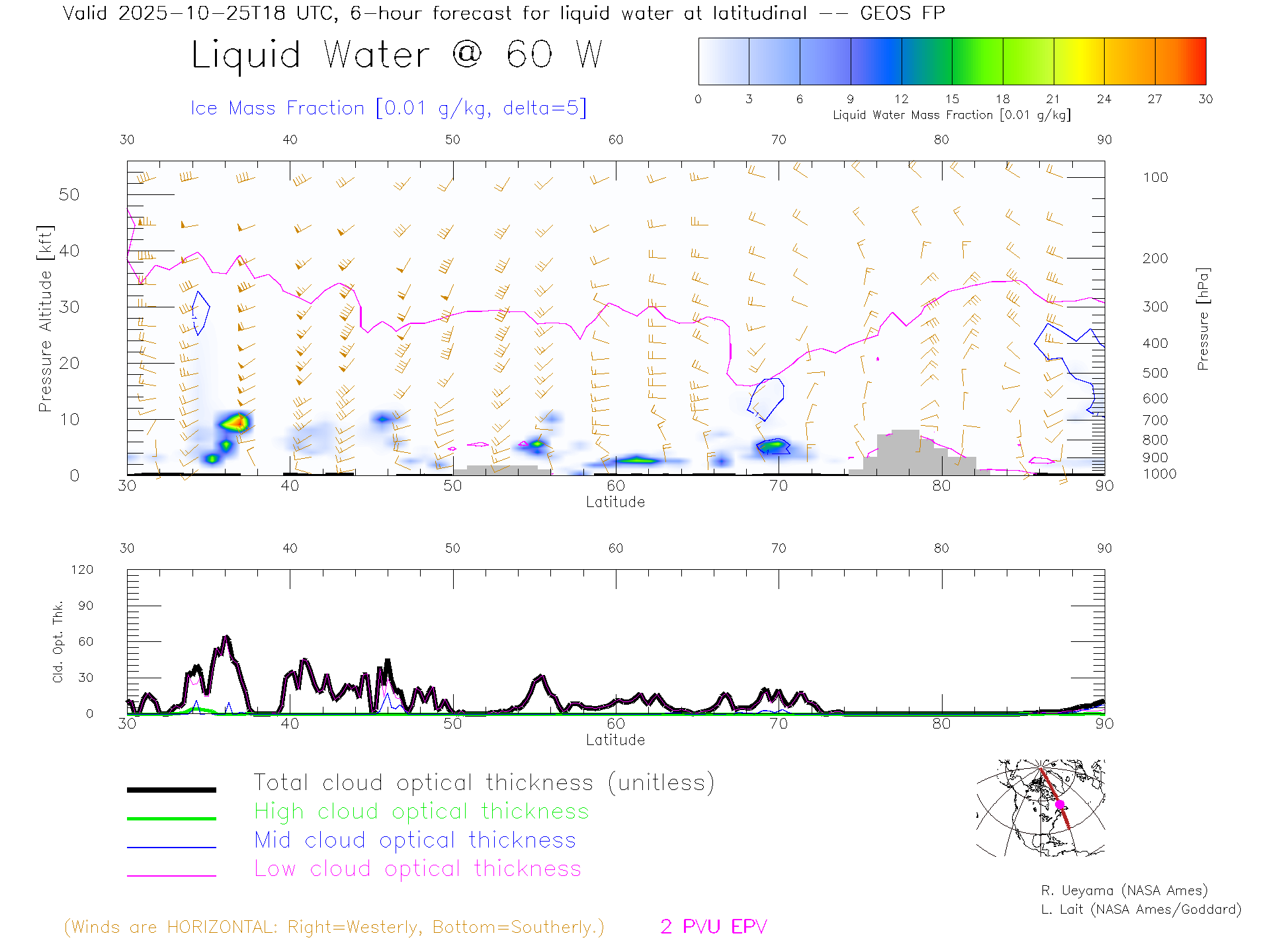 GEOS Forecast Cloud Water Content X-Section (60 W)