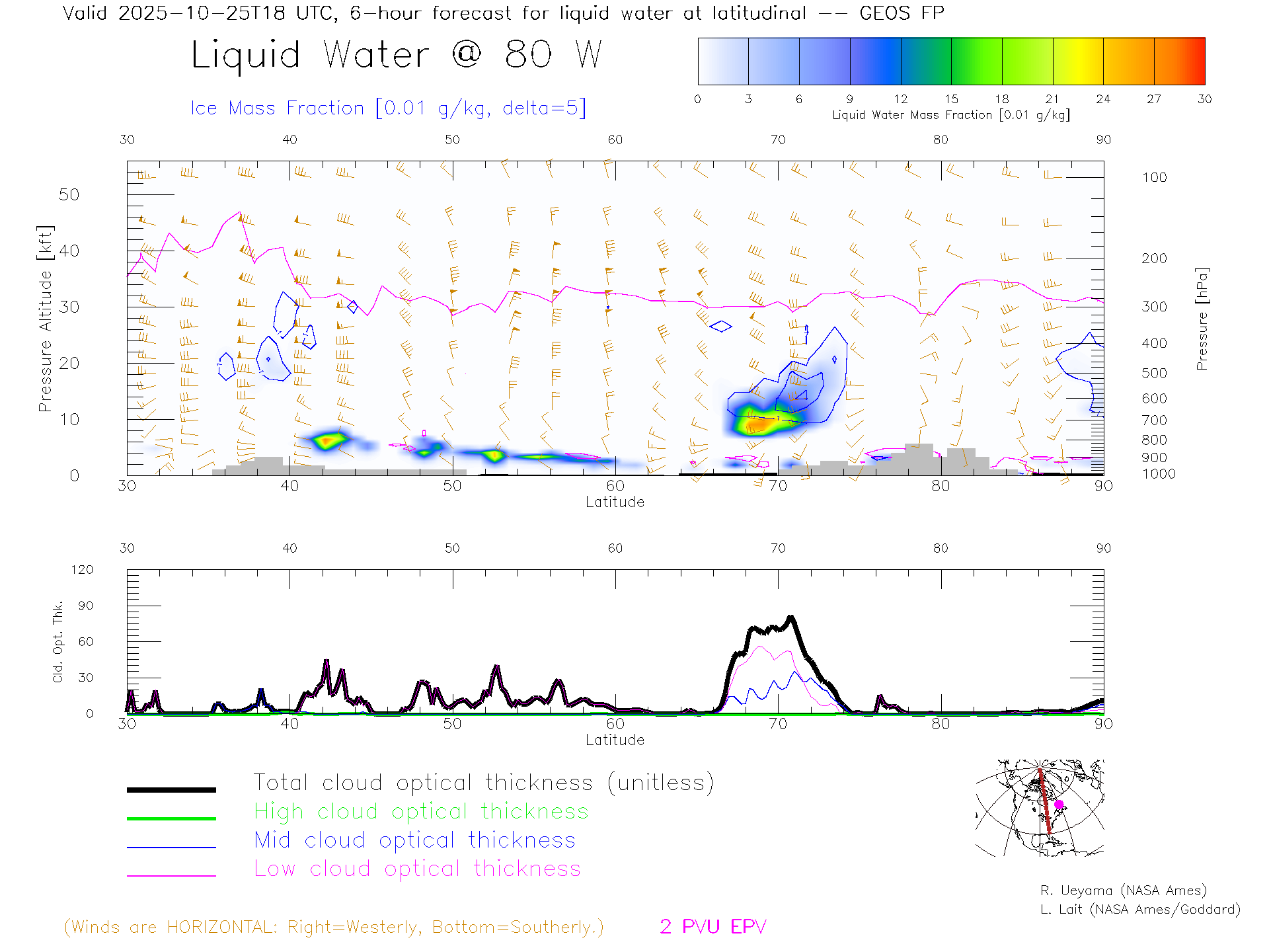GEOS Forecast Cloud Water Content X-Section (80 W)