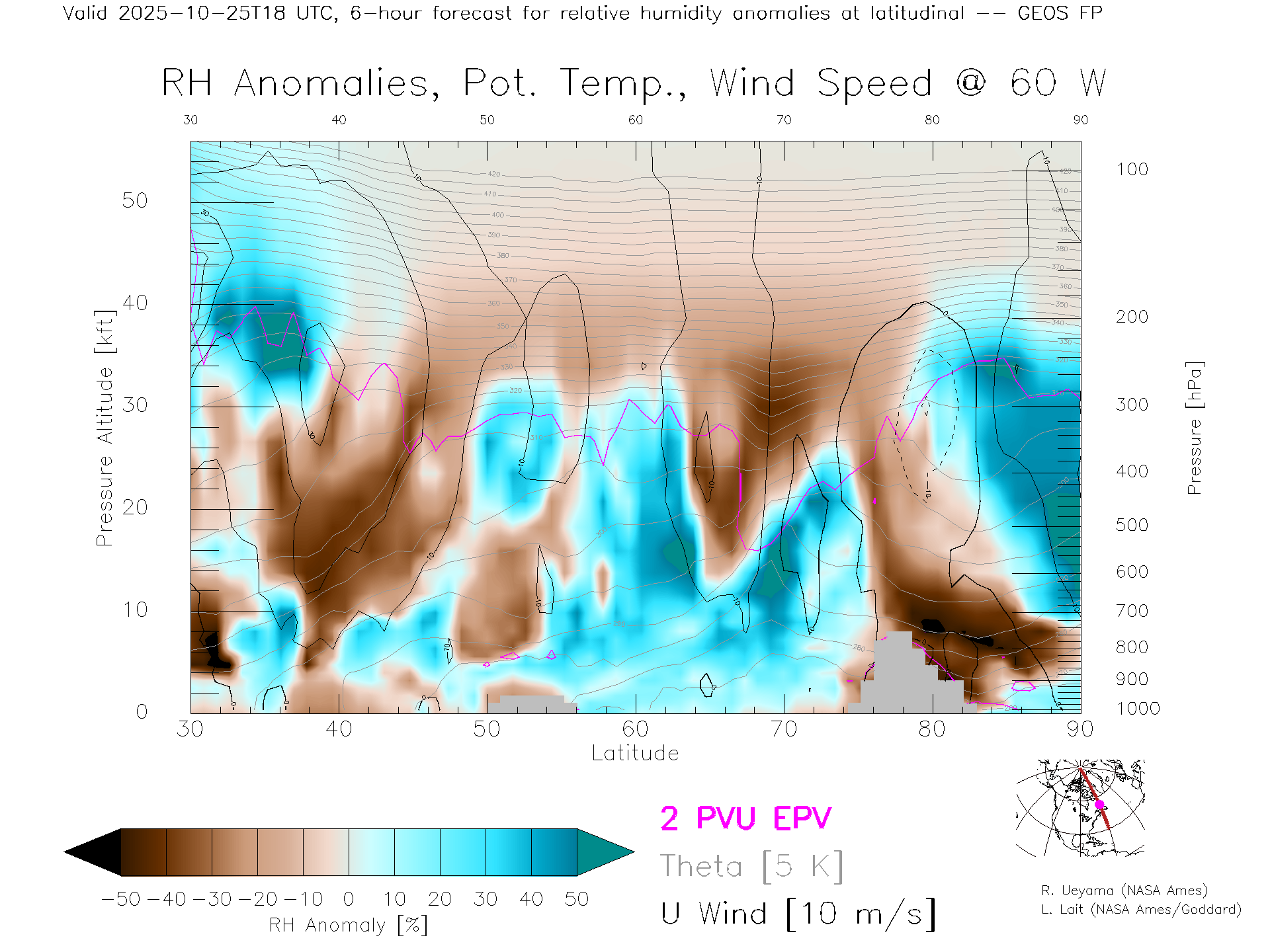 GEOS Forecast Rel. Hum. X-Section (60 W)