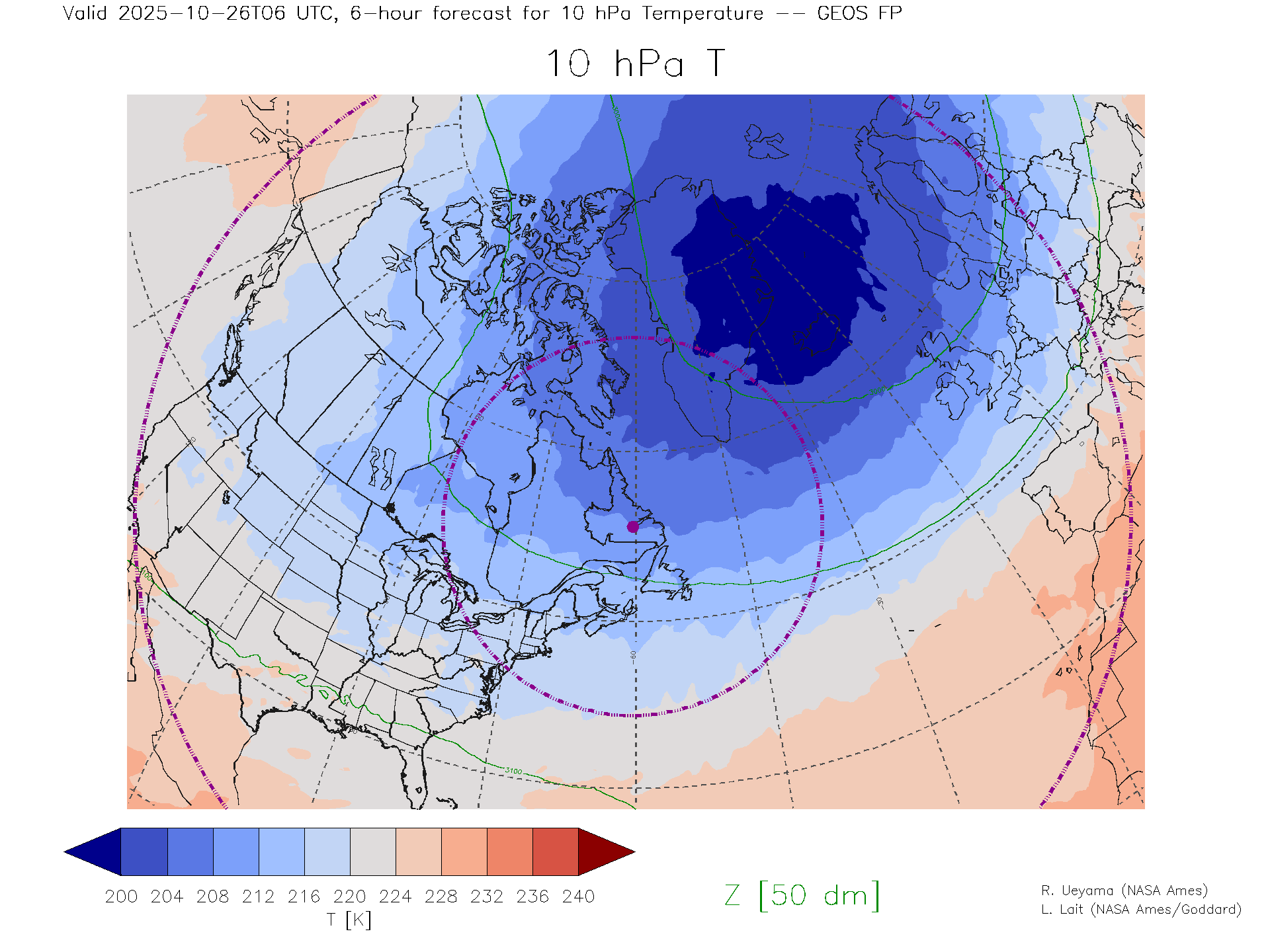 GEOS Forecast 10 hPa Temp.