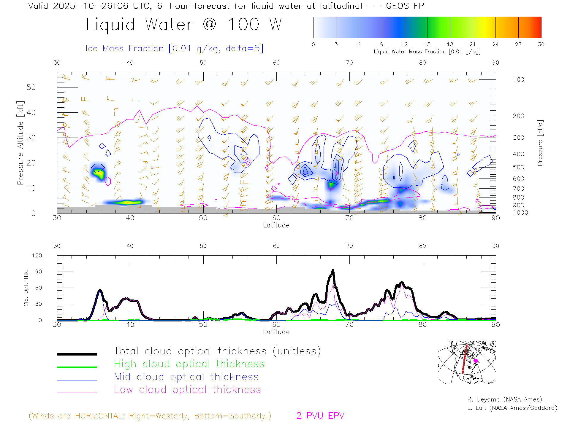 GEOS Forecast Cloud Water Content X-Section (100 W)