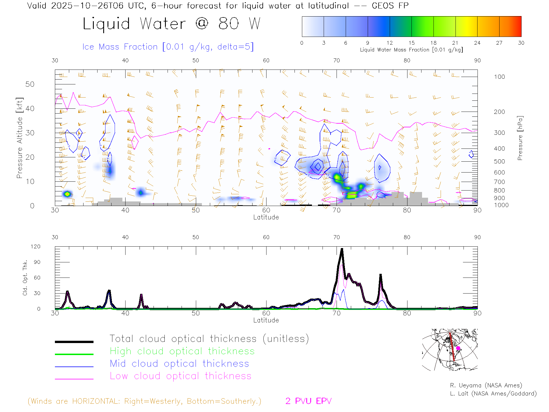 GEOS Forecast Cloud Water Content X-Section (80 W)