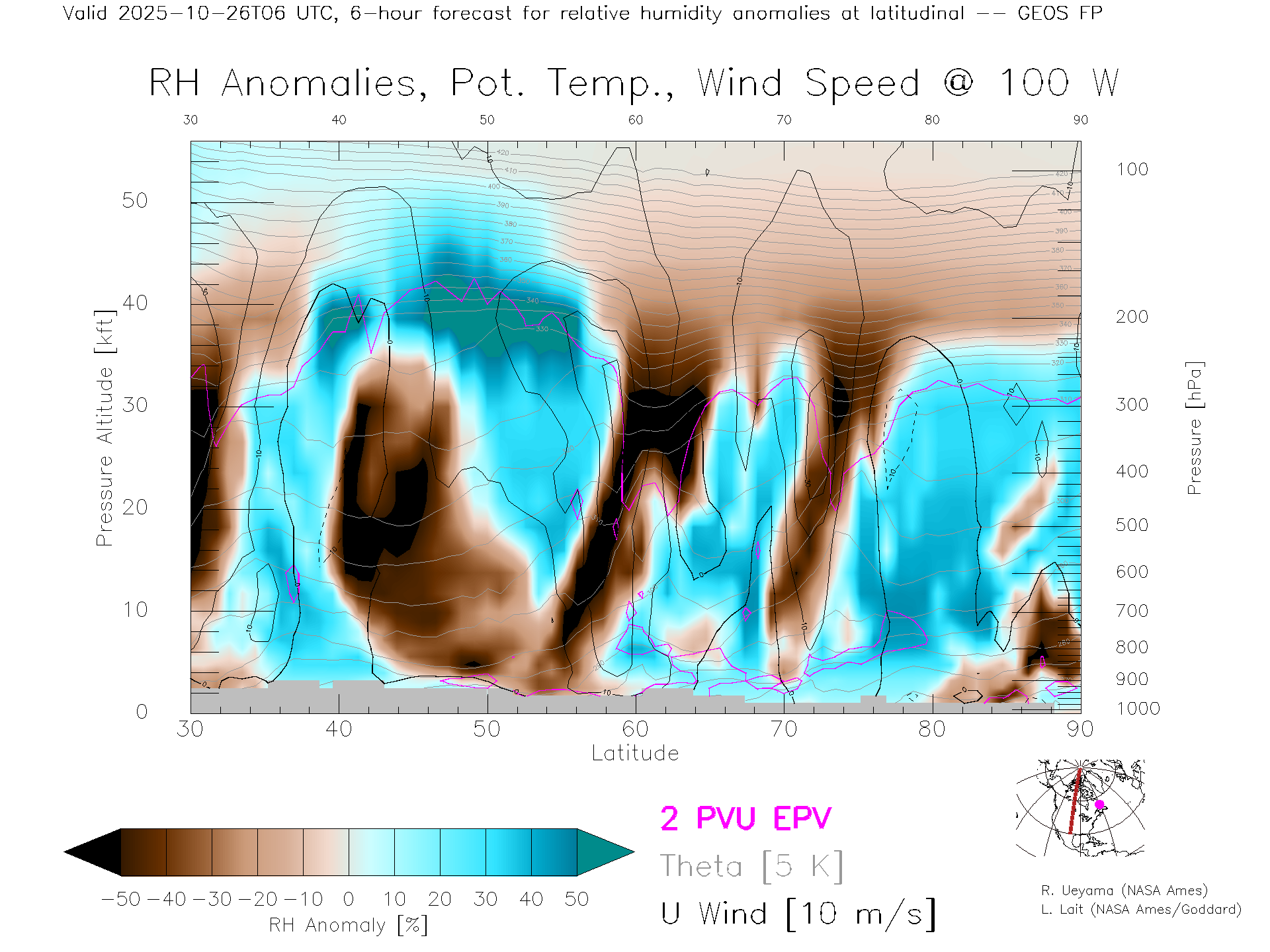 GEOS Forecast Rel. Hum. X-Section (100 W)