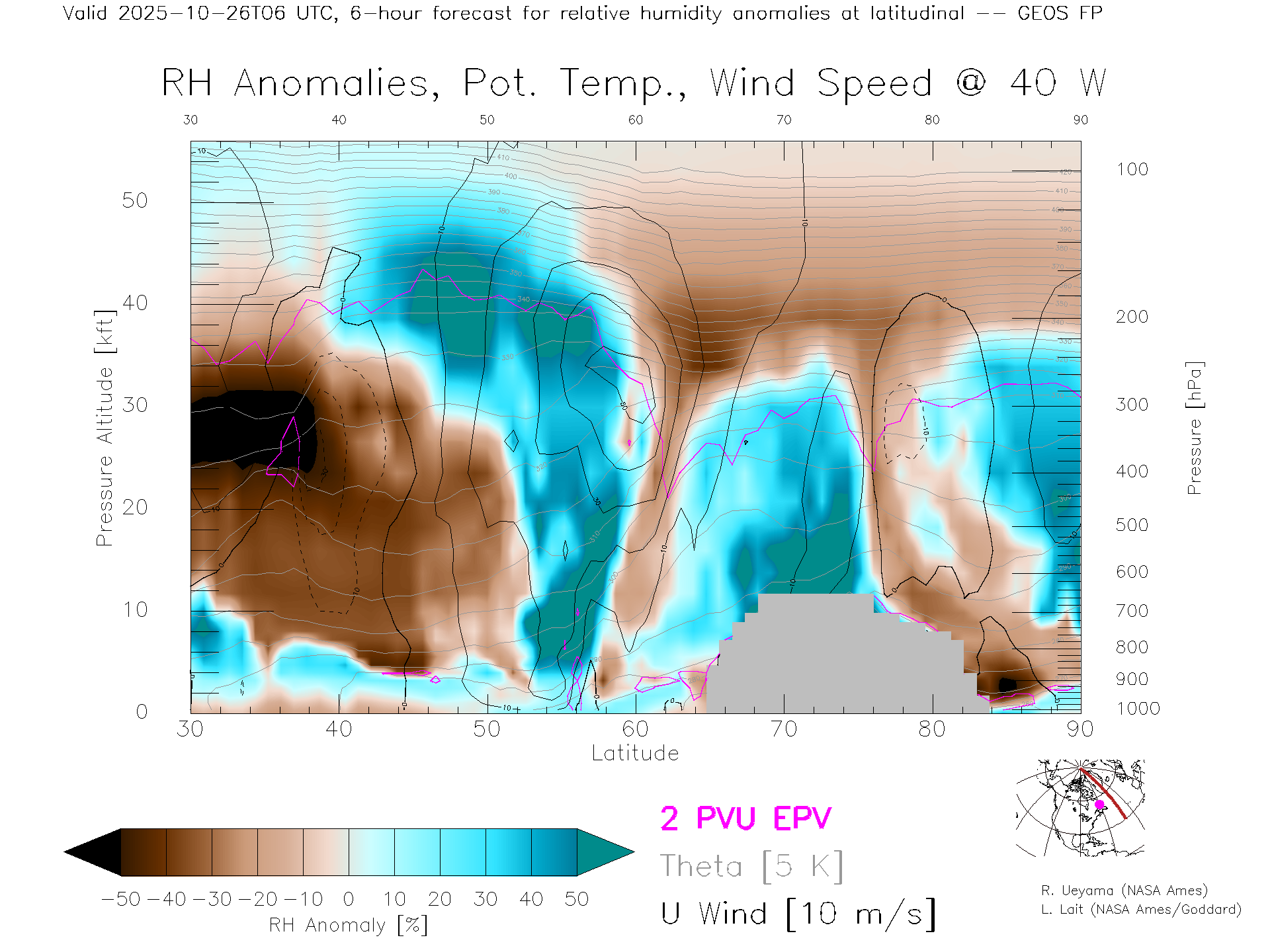 GEOS Forecast Rel. Hum. X-Section (40 W)