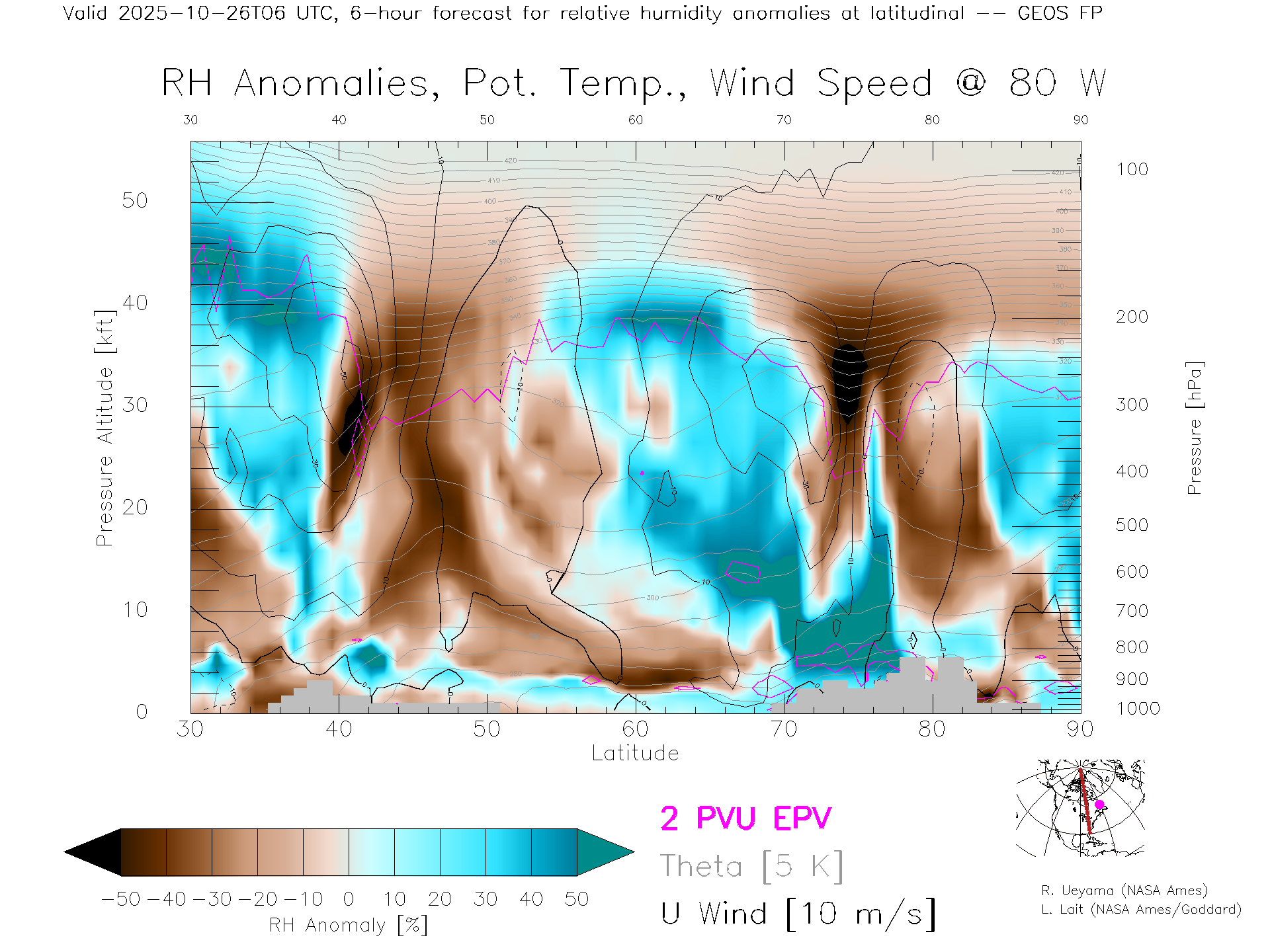 GEOS Forecast Rel. Hum. X-Section (80 W)