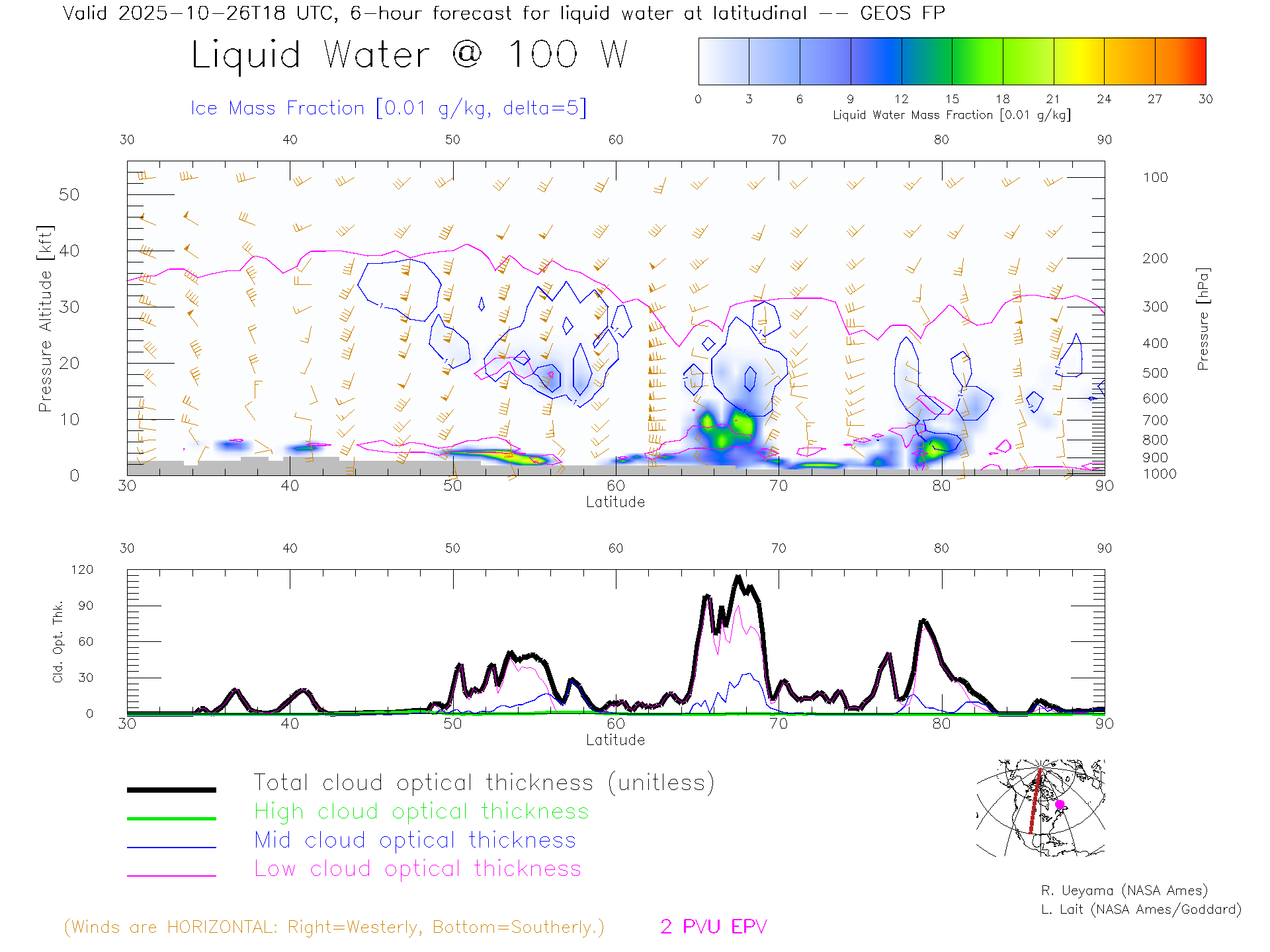 GEOS Forecast Cloud Water Content X-Section (100 W)