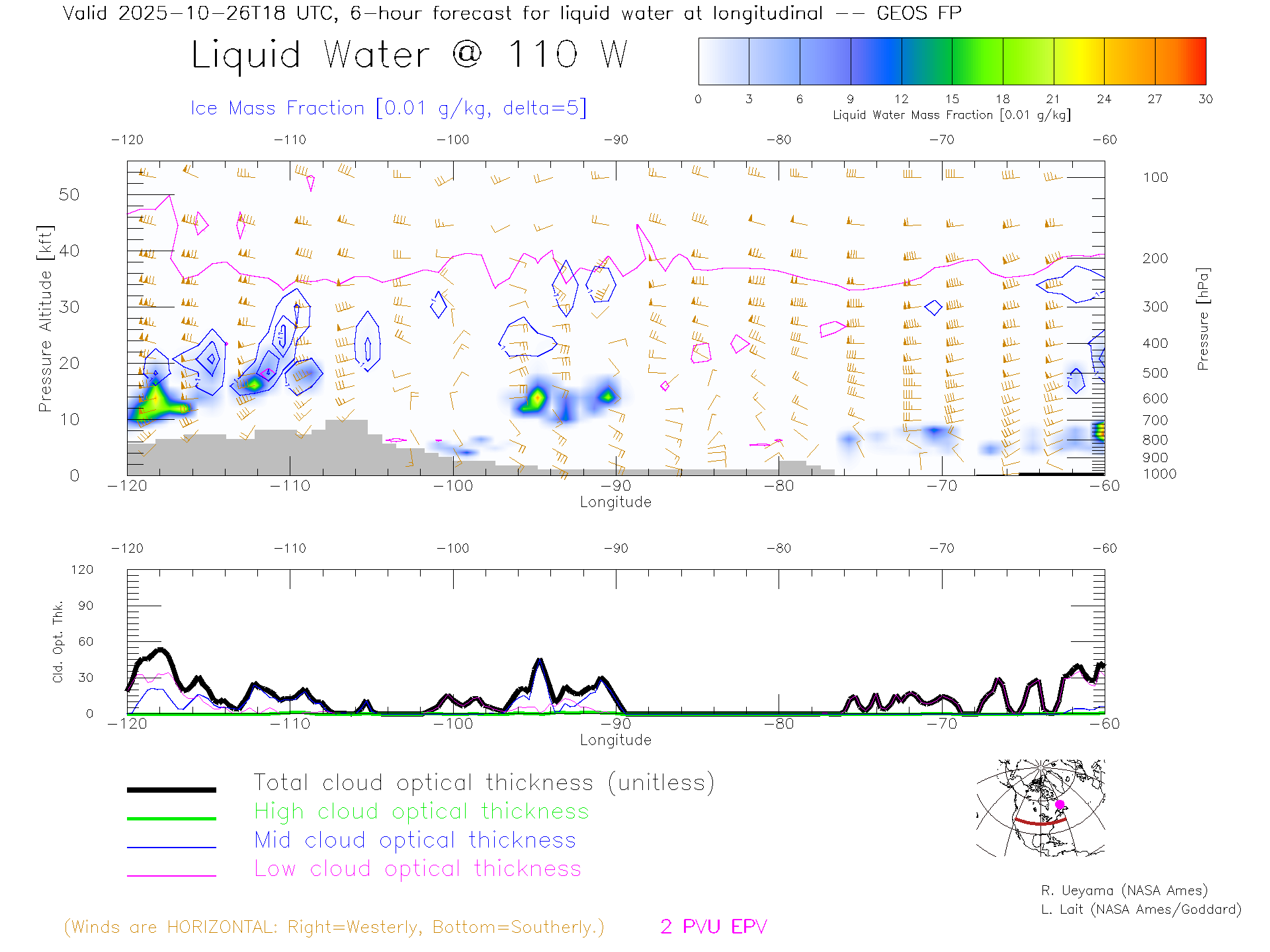 GEOS Forecast Cloud Water Content X-Section (40 N)