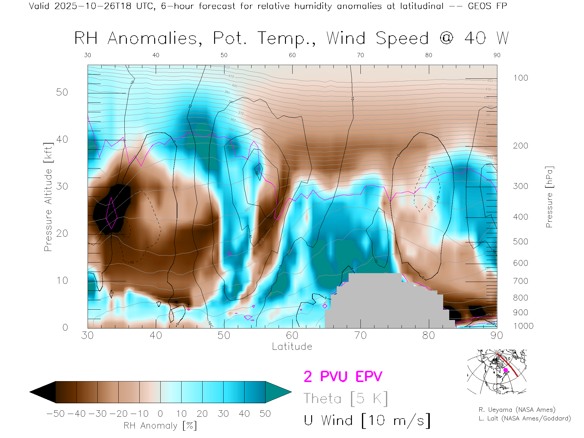 GEOS Forecast Rel. Hum. X-Section (40 W)