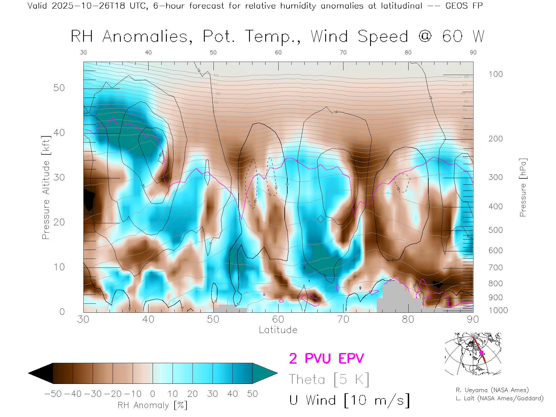 GEOS Forecast Rel. Hum. X-Section (60 W)