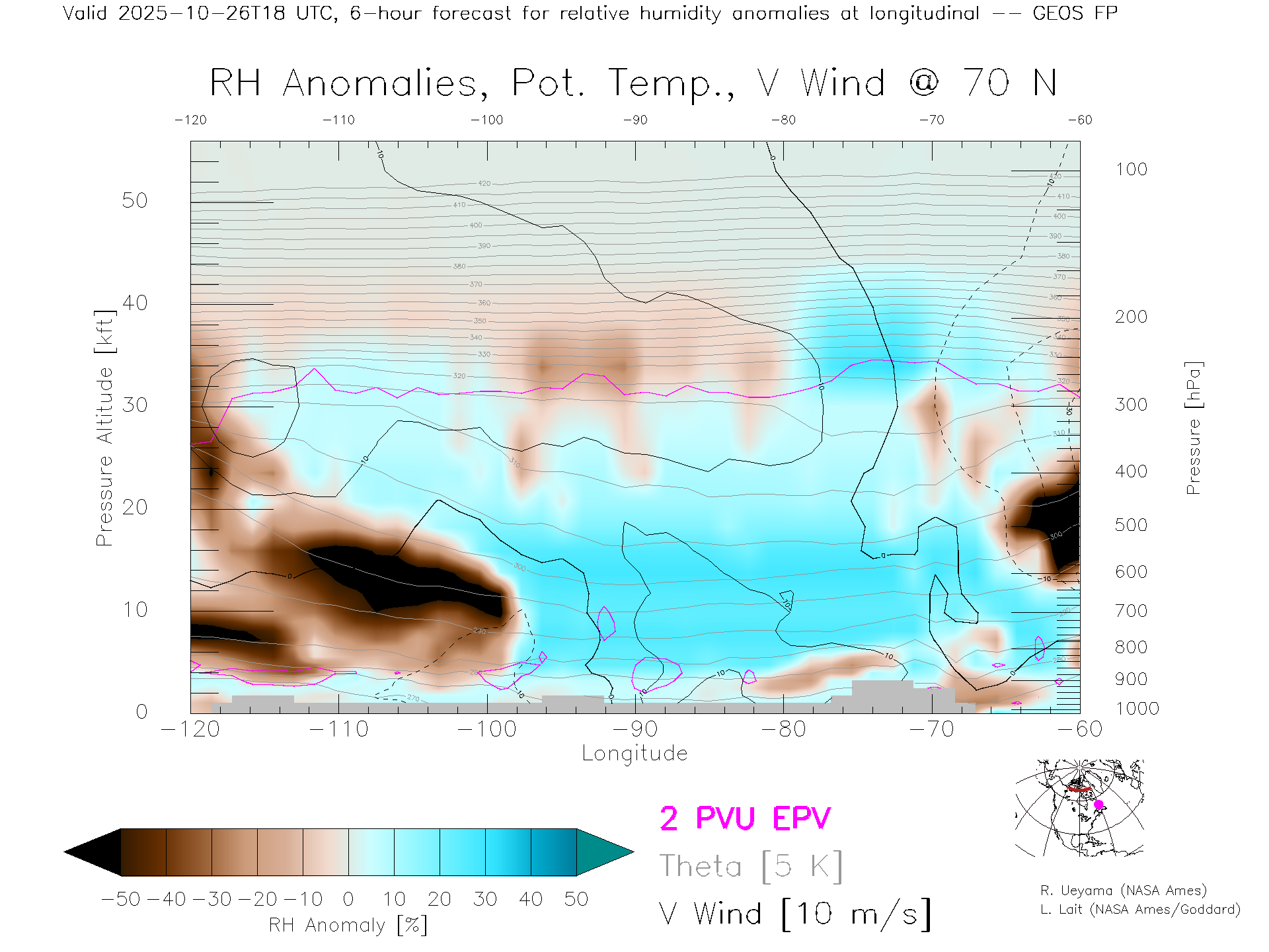 GEOS Forecast Rel. Hum. X-Section (70 N)