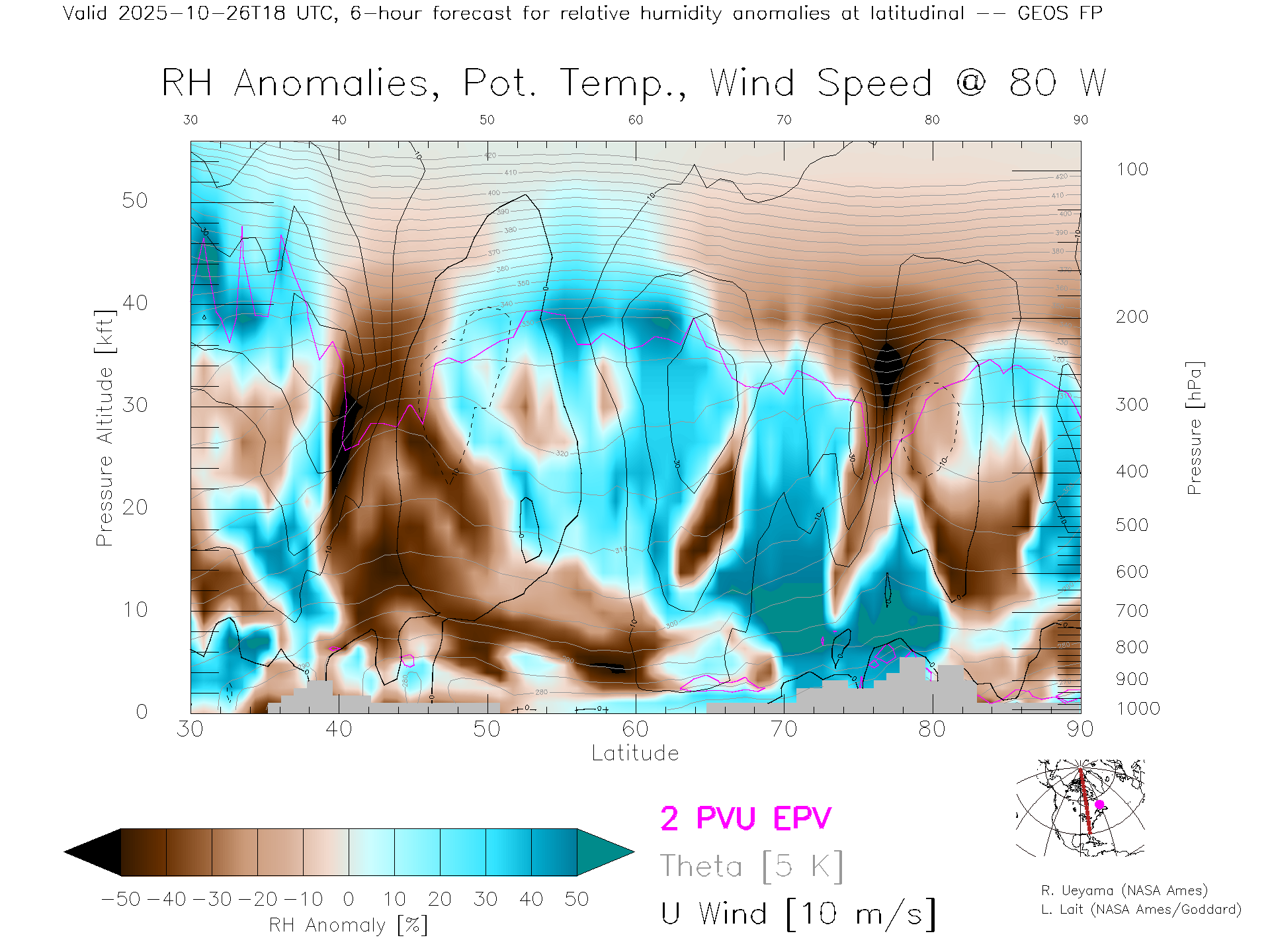 GEOS Forecast Rel. Hum. X-Section (80 W)