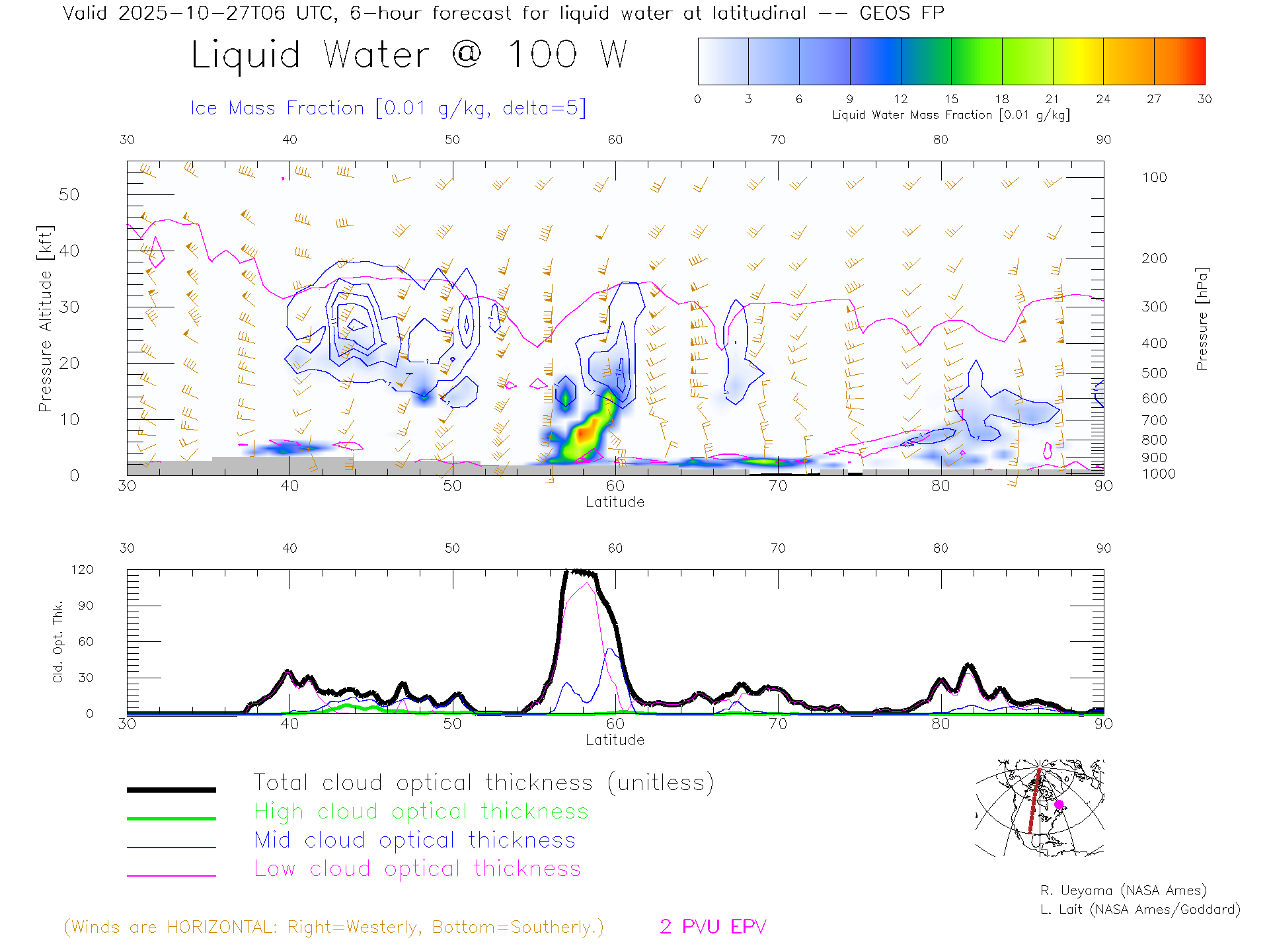 GEOS Forecast Cloud Water Content X-Section (100 W)