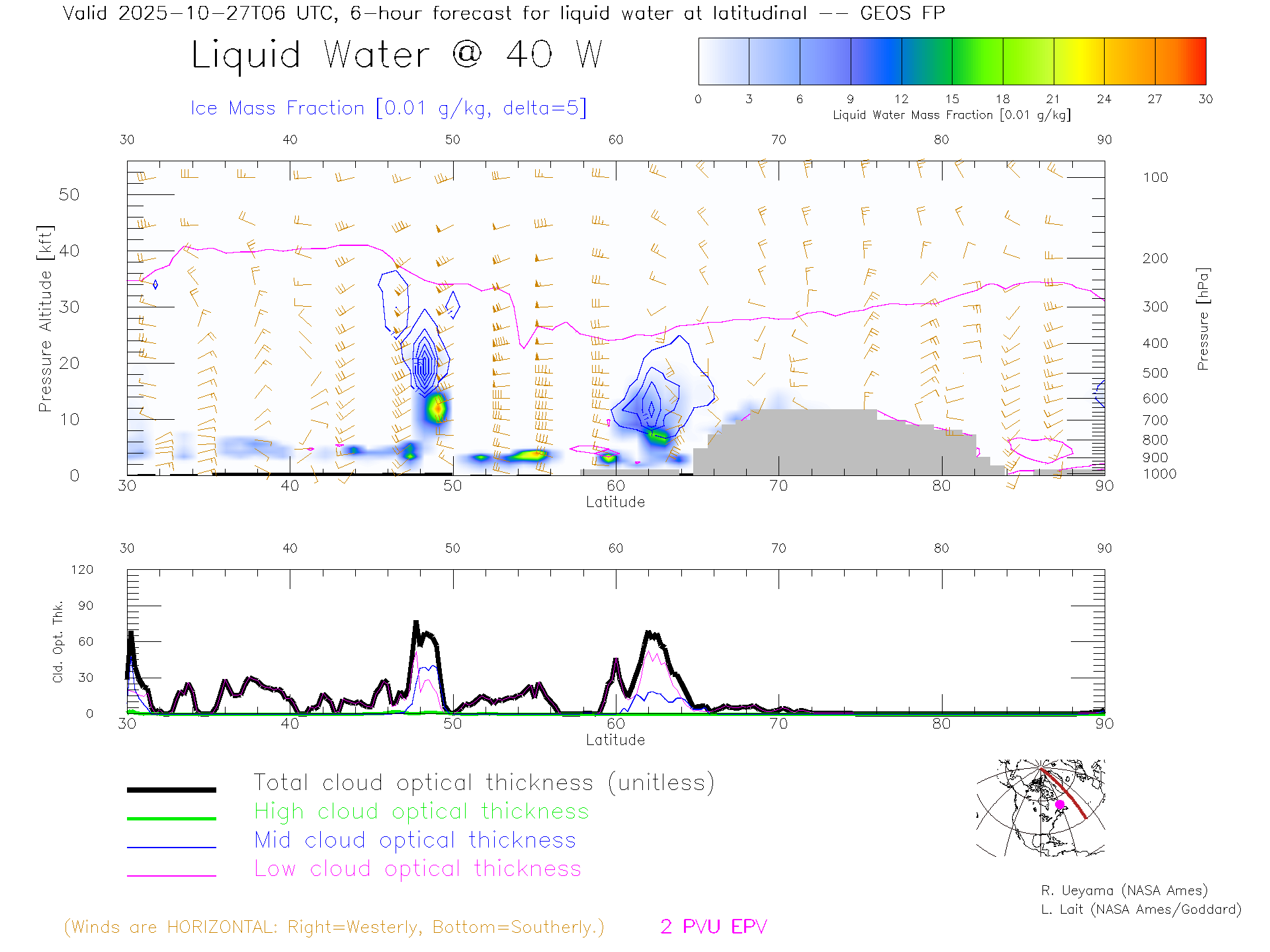 GEOS Forecast Cloud Water Content X-Section (40 W)