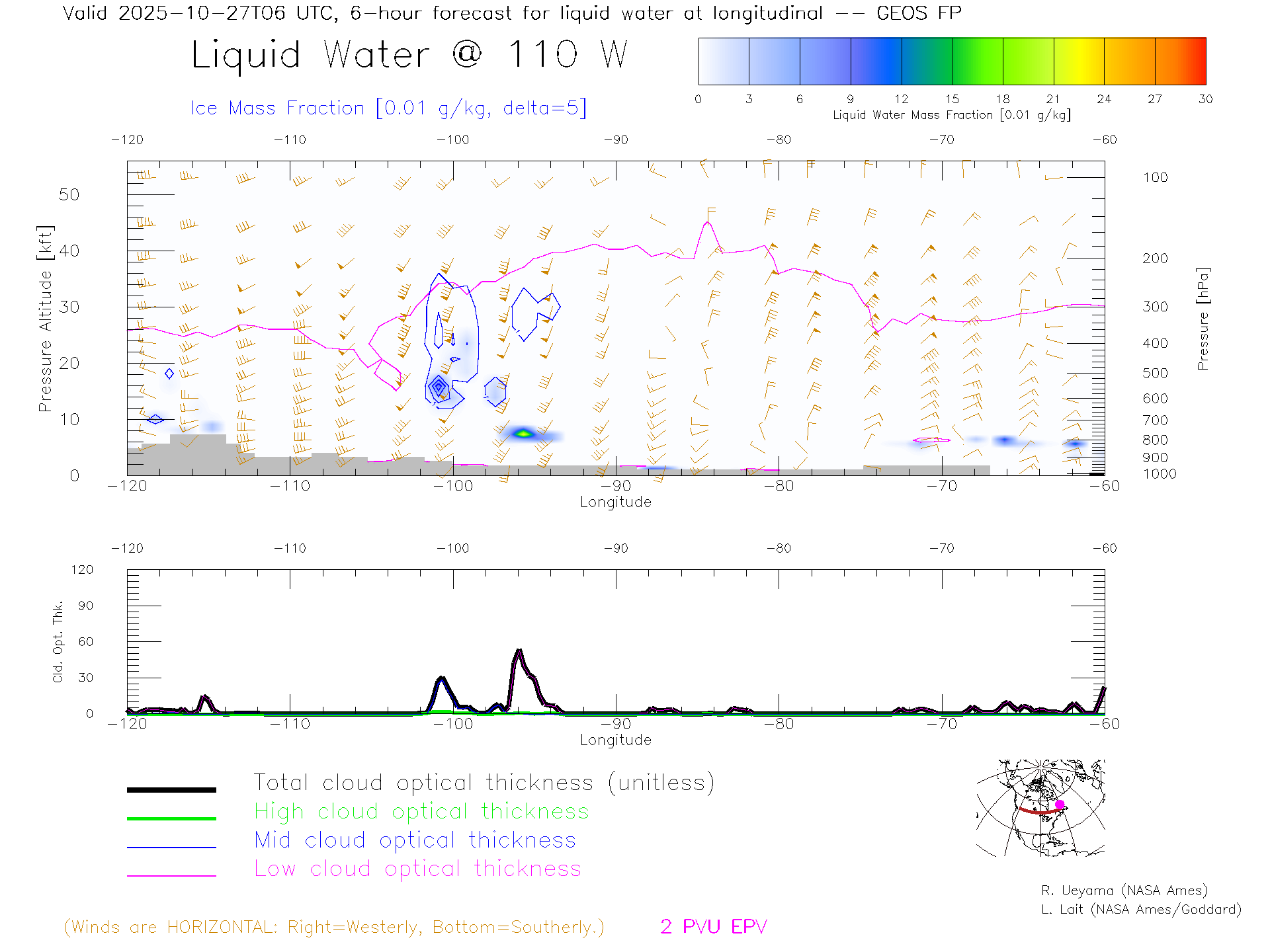GEOS Forecast Cloud Water Content X-Section (50 N)
