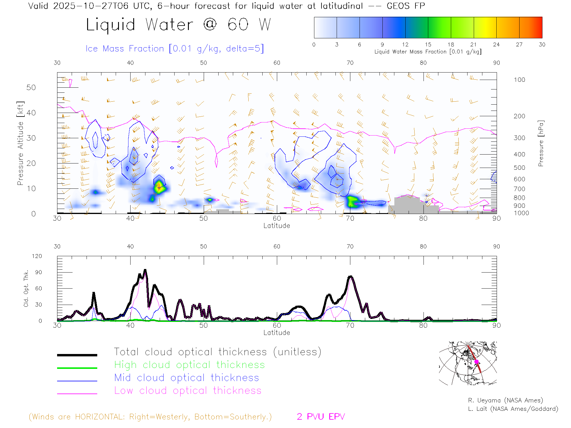 GEOS Forecast Cloud Water Content X-Section (60 W)